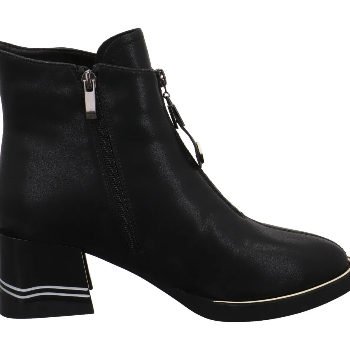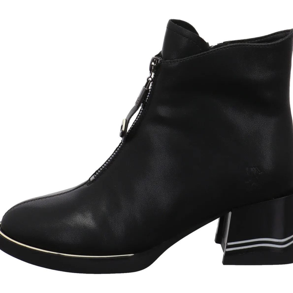 Sie wurde aus hochwertigem Echtleder in Schwarz gefertigt und ist auf dem Rist mit einem Zierzipper versehen. Mit dem Reißverschluss an der Innenseite, ist das An- und Ausziehen ganz einfach. Durch die stilvolle Linienführung vom Schaft, kannst du die Stiefelette sehr schön mit einem Rock oder Kleid kombinieren. Die Innensohle ist angenehm weich und bietet dir den ganzen Tag einen angenehmen Tragekomfort.