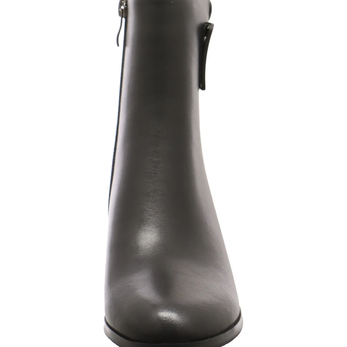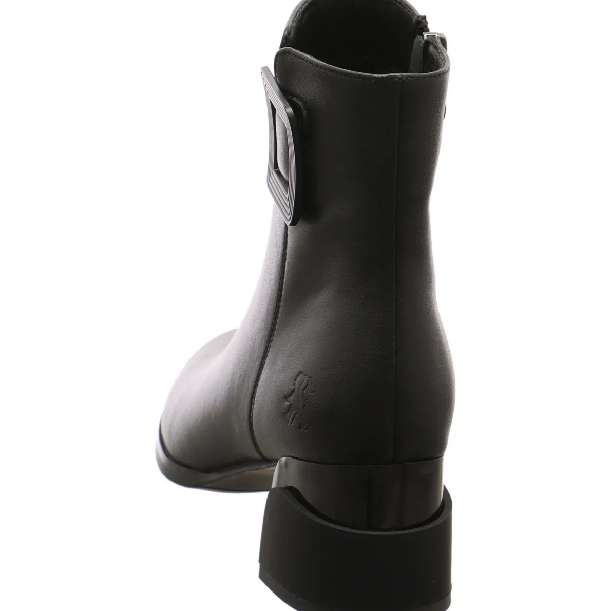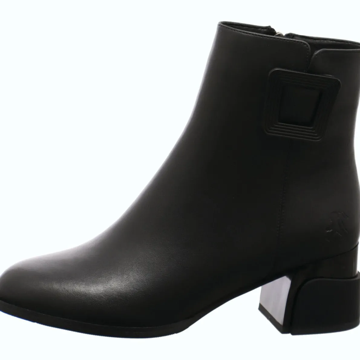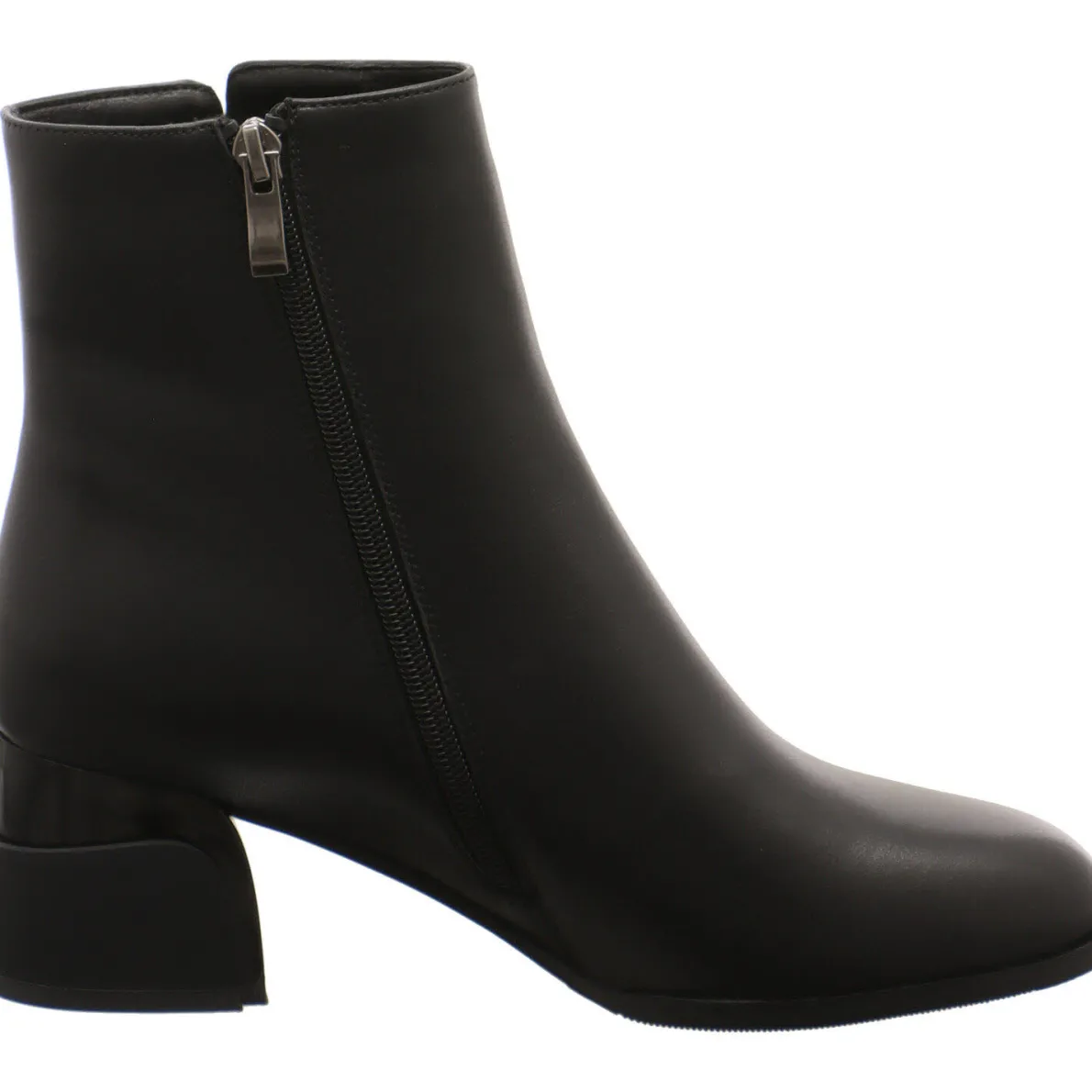 Gefertigt aus hochwertigem Echtleder in Schwarz überzeugt sie mit ihrem eher dezenten, modernen Look. Ein besonderes optisches Highlight ist die angebrachte Applikation am Schaft der und der Blockabsatz im Overlay Design in Matt und Lack Optik, welcher tolle Beine zaubert.