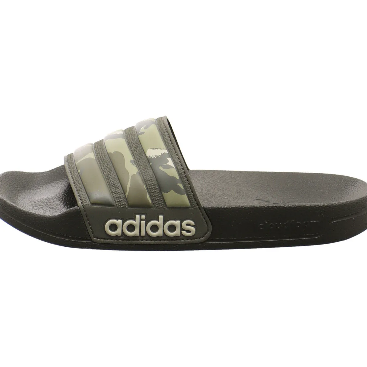 Die Adilette Shower ist ein Badeschuh für Damen und Herren von Adidas in Oliv Grün mit einem angesagten Camouflagemuster und ein absoluter Klassiker. Die klassischen 3 Streifen mit dem Muster und das seitliche Logo runden das Design perfekt ab. Er ist bestens geeignet für das volle Programm vor und nach dem Training.