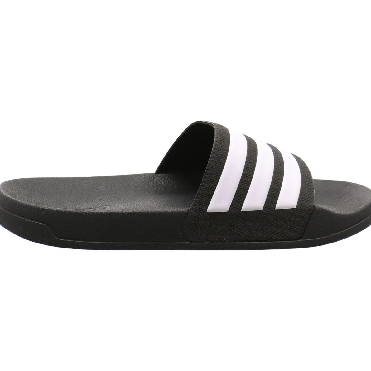 Die CF Adilette ist ein Badeschuh für Herren und Damen von Adidas in Schwarz und ein absoluter Klassiker. Er ist bestens geeignet für das volle Programm vor und nach dem Training.