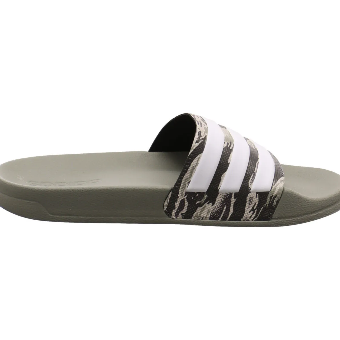 Sie gehört schon fast zu einem Basic Artikel. Die Adilette Shower von Adidas für Damen und Herren ist ein wahres Allround Talent. Ob als Badeschuh im Schwimmbad, für die Umkleide nach dem Training oder Zuhause. Sie macht jeden Einsatz zuverlässig mit. Das Material aus Synthetik in Grün ist mit den klassischen drei Streifen in Weiß versehen und darunter mit einem modischen Camouflage Muster verziert. Die Pantolette trocknet schnell und ist angenehm weich, wodurch der Schritt optimal gedämpft wird. Für alle Trendsetter, ihr könnt den Schuh auch super zu eurem Casual Outfit im Sommer kombinieren.