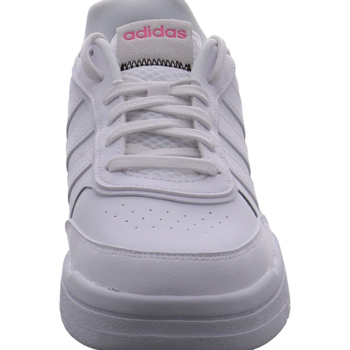 Der Postmove SE ist ein angesagter Damen Sneaker von Adidas der sich vom Basketball inspirieren lassen hat. Dieser Schuh ist der perfekte Begleiter für einen busy Lifestyle. Das Obermaterial aus beschichtetem Leder und Synthetik in Weiß macht den Schuh sehr klassisch und kombinierbar zu jedem Outfit. Highlights sind die Einsätze in Schwarz und Pink an der Ferse, sowie der Leoprint Einsatz am Schaft und Ziernähte in Pink. Der gepolsterte Geofit Schaft und die Cloudfoam Super Zwischensohle sorgen für optimale Dämpfung und ein superbequemes Tragegefühl.