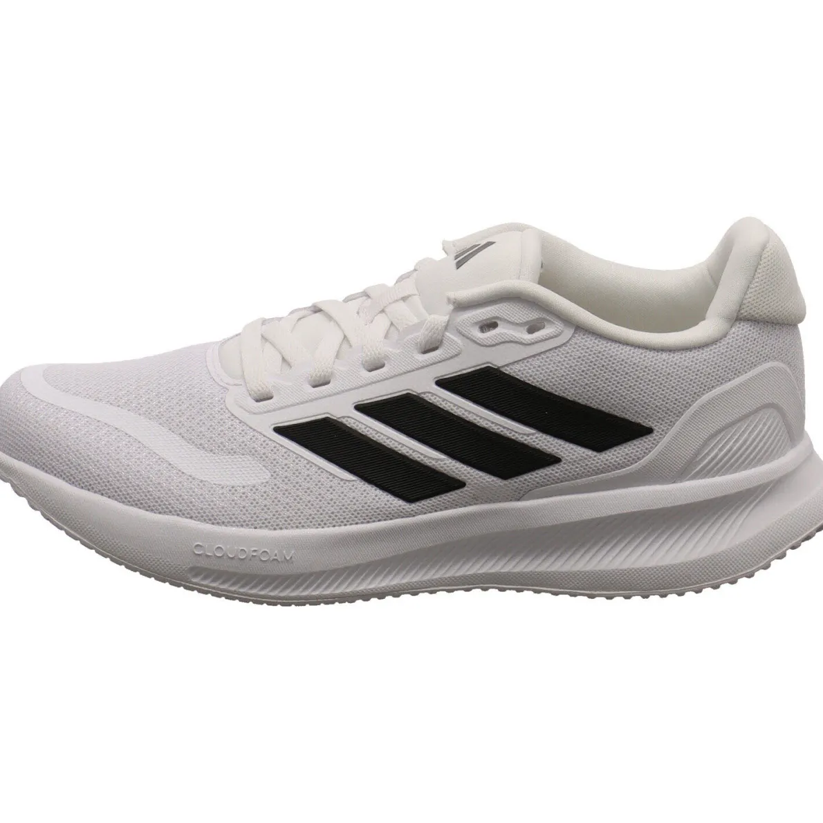 Der Runfalcon 5 J aus dem Hause Adidas ist ein vielseitiger Sneaker für Mädchen und Jungen in Weiß, mit den typischen Adidas Streifen in Schwarz.
