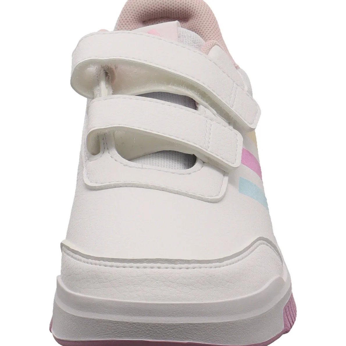 Die klassischen drei Streifen in angesagten Neon Farben, wie Gelb, Pink und Blau, fallen sofort ins Auge und der doppelte Klettverschluss macht das An- und Ausziehen besonders schnell und einfach.