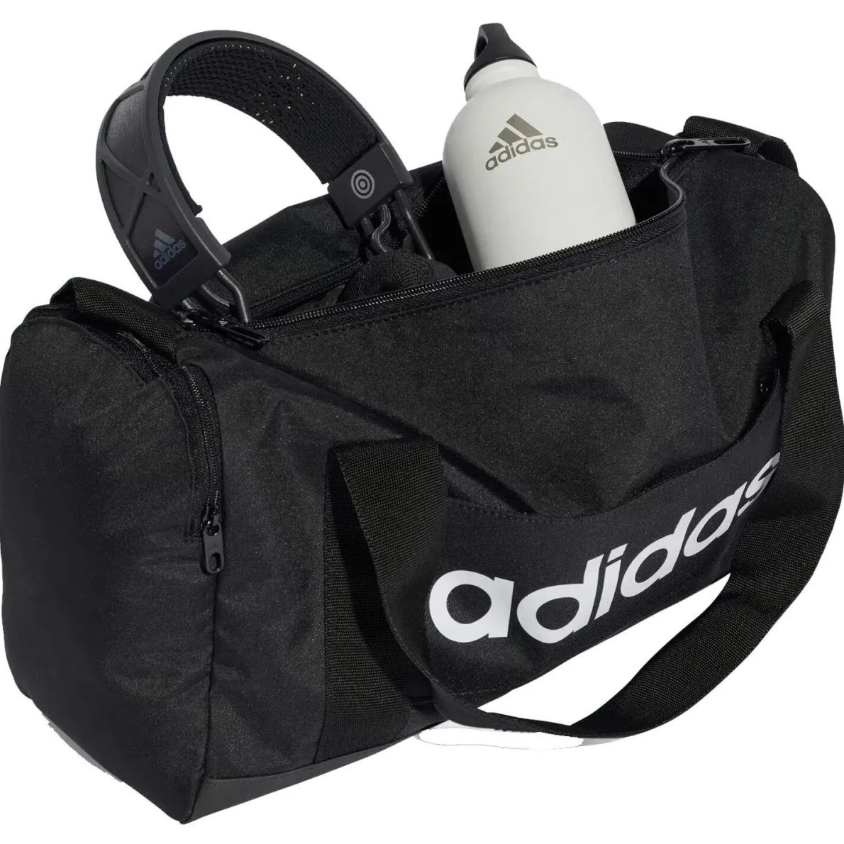 Die Linear Duffel XS von Adidas ist eine klassische Unisex Sporttasche für Damen und Herren in Schwarz für Alles, was du beim täglichen Training benötigst. Die Tasche ist zu 100% aus Polyester gefertigt. Die Taschenöffnung mit Reißverschluss sorgt für guten Überblick und zusätzlich zu den Tragegriffen bietet der verstellbare Schultergurt die Möglichkeit, die Tasche komfortabel umzuhängen. Der verstärkte Taschenboden gibt der Tasche einen guten Stand und sie ist dadurch sehr robust.
