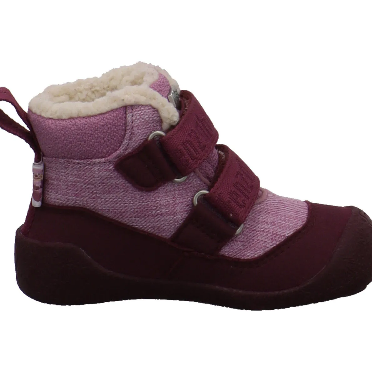 Er wurde aus recyceltem Polyester in Rosa gefertigt. Durch den doppelten Klettverschluss auf dem der Otter zu sehen ist, ist der Einstieg kinderleicht und der Stiefel kann genau an den Fuß angepasst werden.