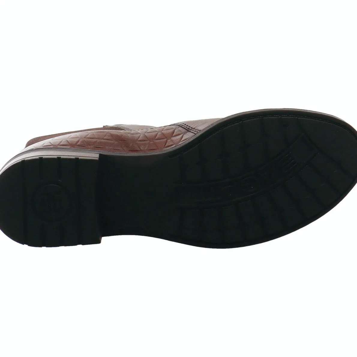 Optische Highlights sind der dunkel abgesetzte Blockabsatz und die Reptilien Look Prägung im Fersenbereich, sowie die Niete mit dem Markenlogo.