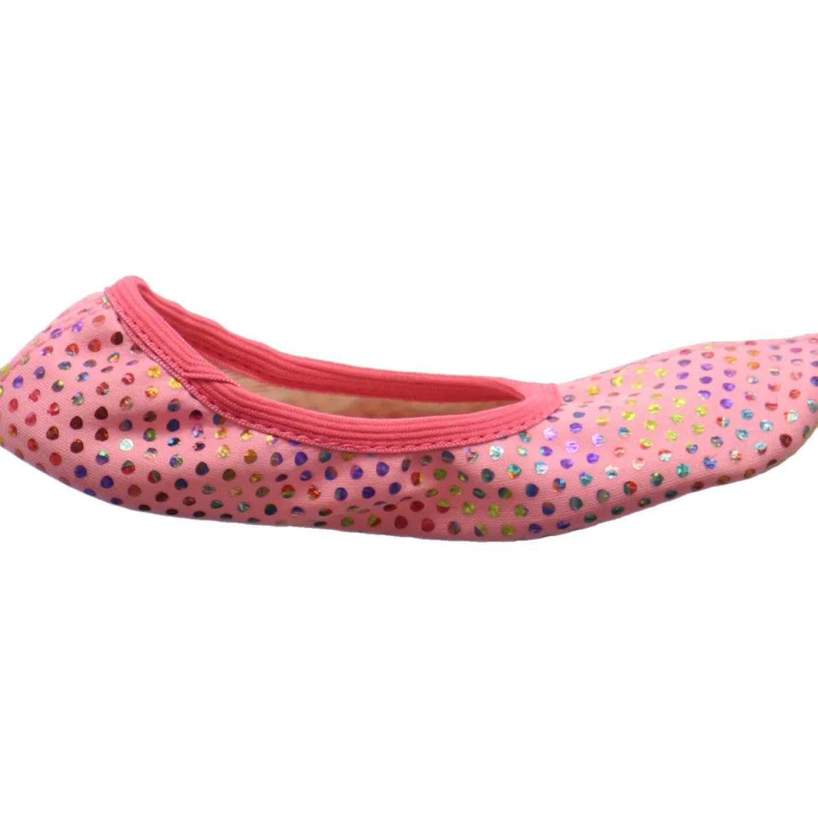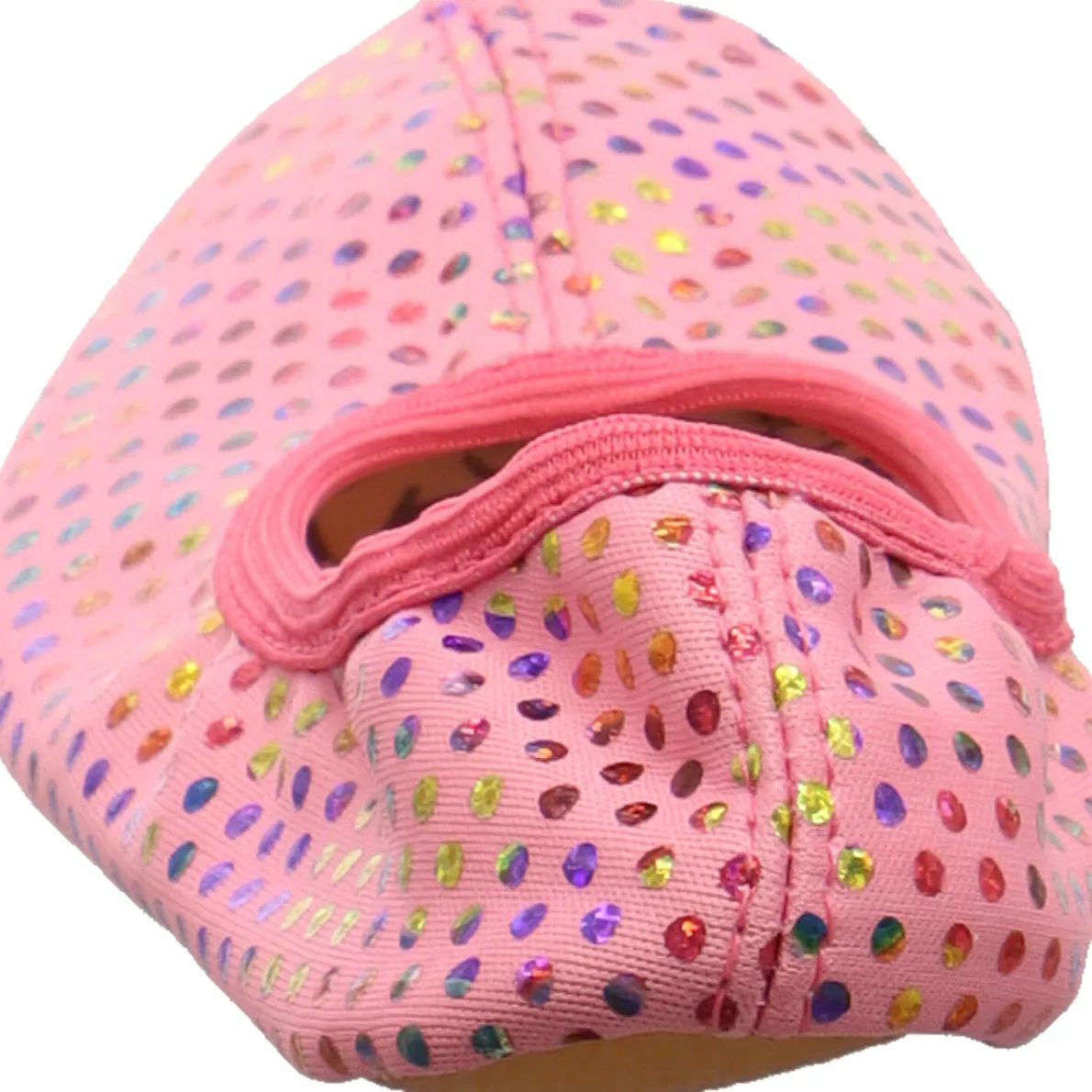 Gefertigt aus griffigem textilen Obermaterial, das mit glänzenden Punkten in Regenbogenfarben verziert ist, machen sie jede Bewegung mit. Der umlaufende Gummizug am Einstieg sorgt für perfekten Halt und die synthetische Sohle ist rutschfest.