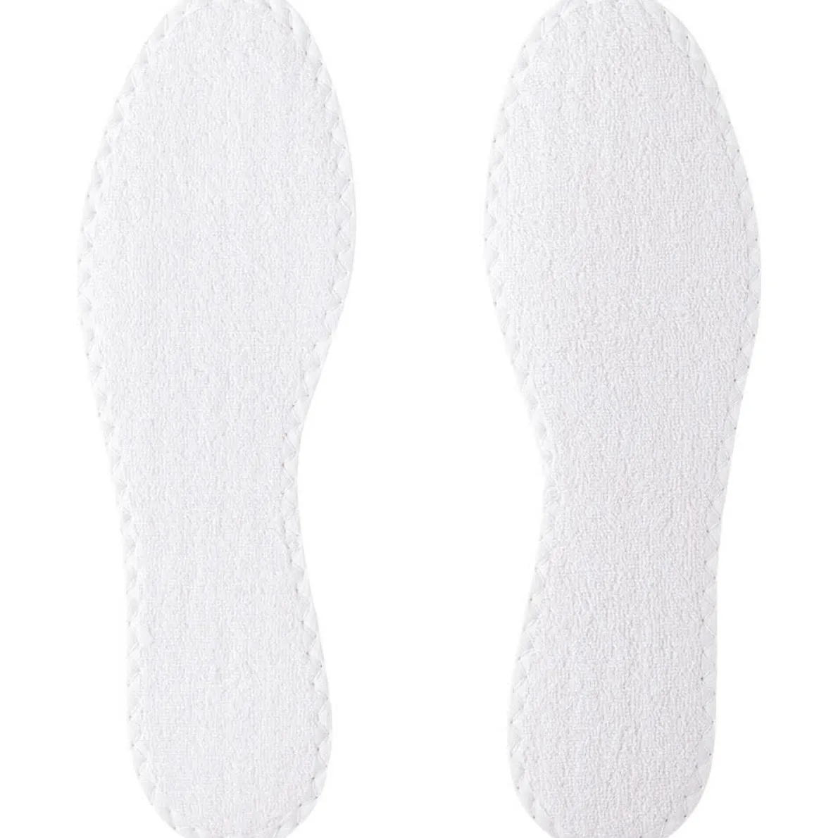 Die Sohle ist aus luftigem Frottee aus 100% Baumwolle hergestellt und dadurch besonders hautfreundlich. Sie bindet die Feuchtigkeit und ist durch die Perforierung besonders luftdurchlässig. Die Unterseite aus Latex-Schaum mit Rillenprofil dämpft jeden Schritt, mindert Fußbrennen und verhindert ein Verrutschen im Schuh.