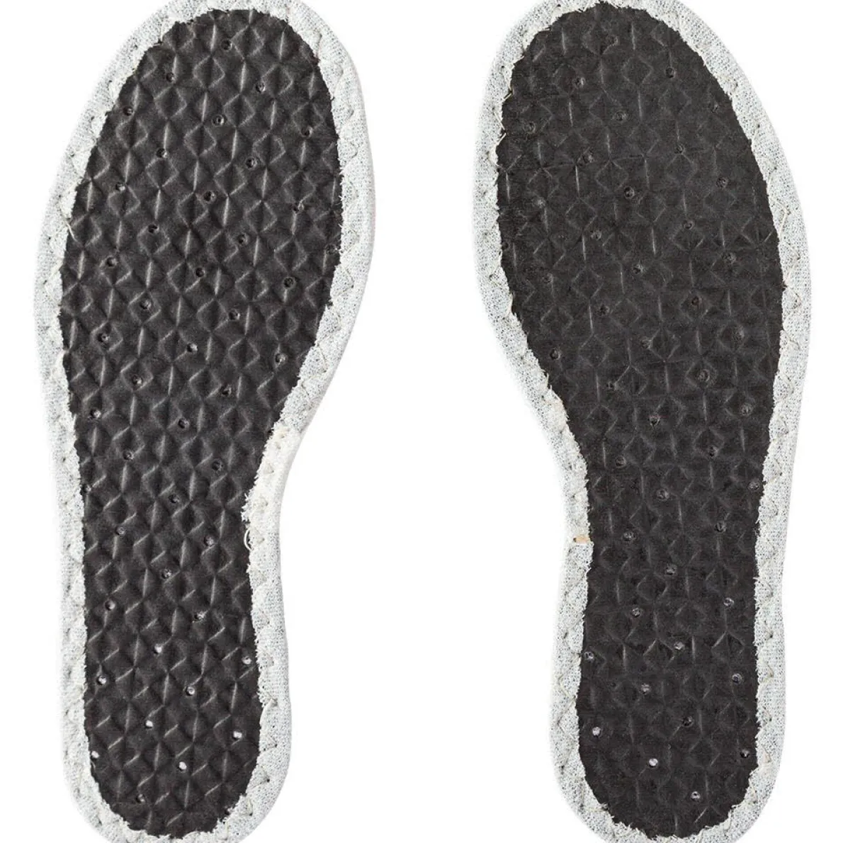 Die Thermo Tec Kids ist eine Kinder Einlegesohle von Bergal aus wärmender Funktionsfaser. Die Aktivkohle-Latexschaum-Polsterung beugt Fußgeruch vor und wirkt schrittdämpfend und polsternd bei jedem Auftritt. Die Aluminiumschutzfolie isoliert die Kälte von unten und das Fell aus Funktionsfaser speichert die Wärme. Die gerillte Latex-Unterseite verhindert ein Verrutschen im Schuh.