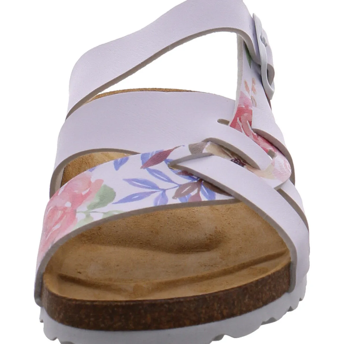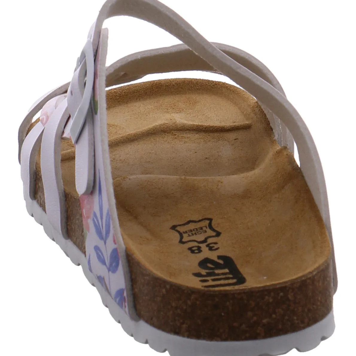 Gefertigt aus pflegeleichtem Kunstleder in Weiß und mit einem schönen Floralen Muster versehen macht der Schuh jeden Einsatz zuverlässig und schick mit.