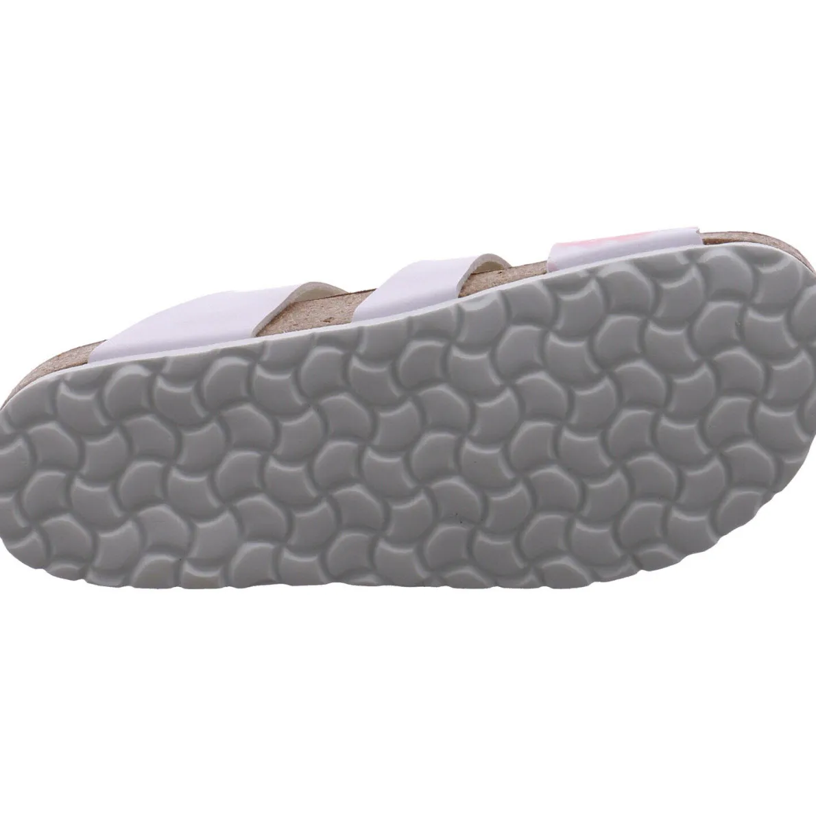 Für Komfort sorgen das anatomisch geformte Fußbett aus Echtleder, hergestellt in Spanien und die regulierbare Schnalle.