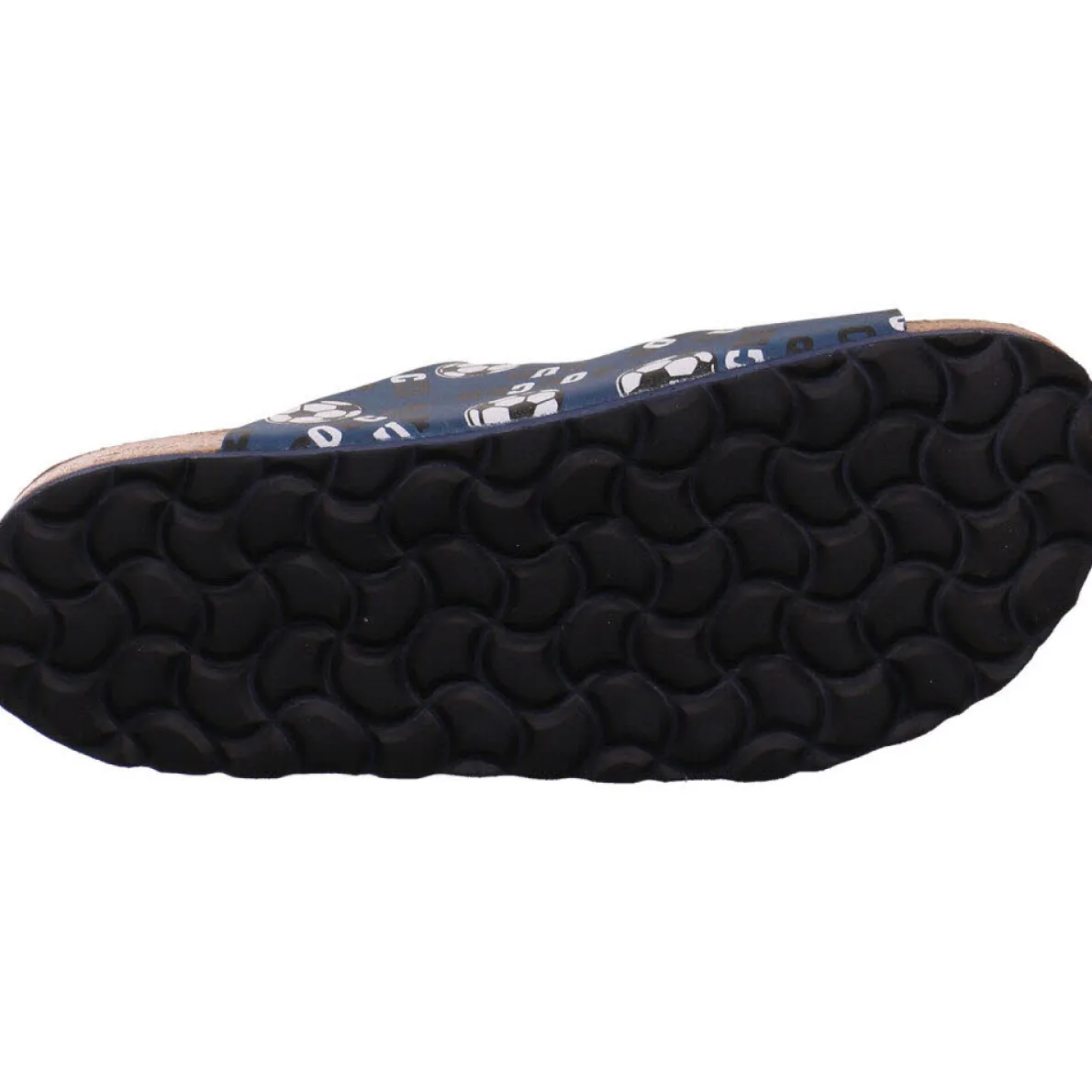 Gefertigt aus pflegeleichtem Kunstleder in Blau und mit einem coolen Fußball Aufdruck versehen macht der Schuh jeden Einsatz zuverlässig mit.