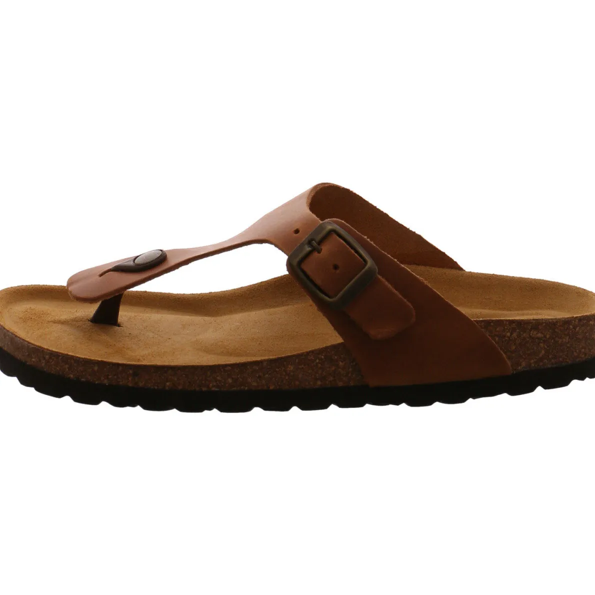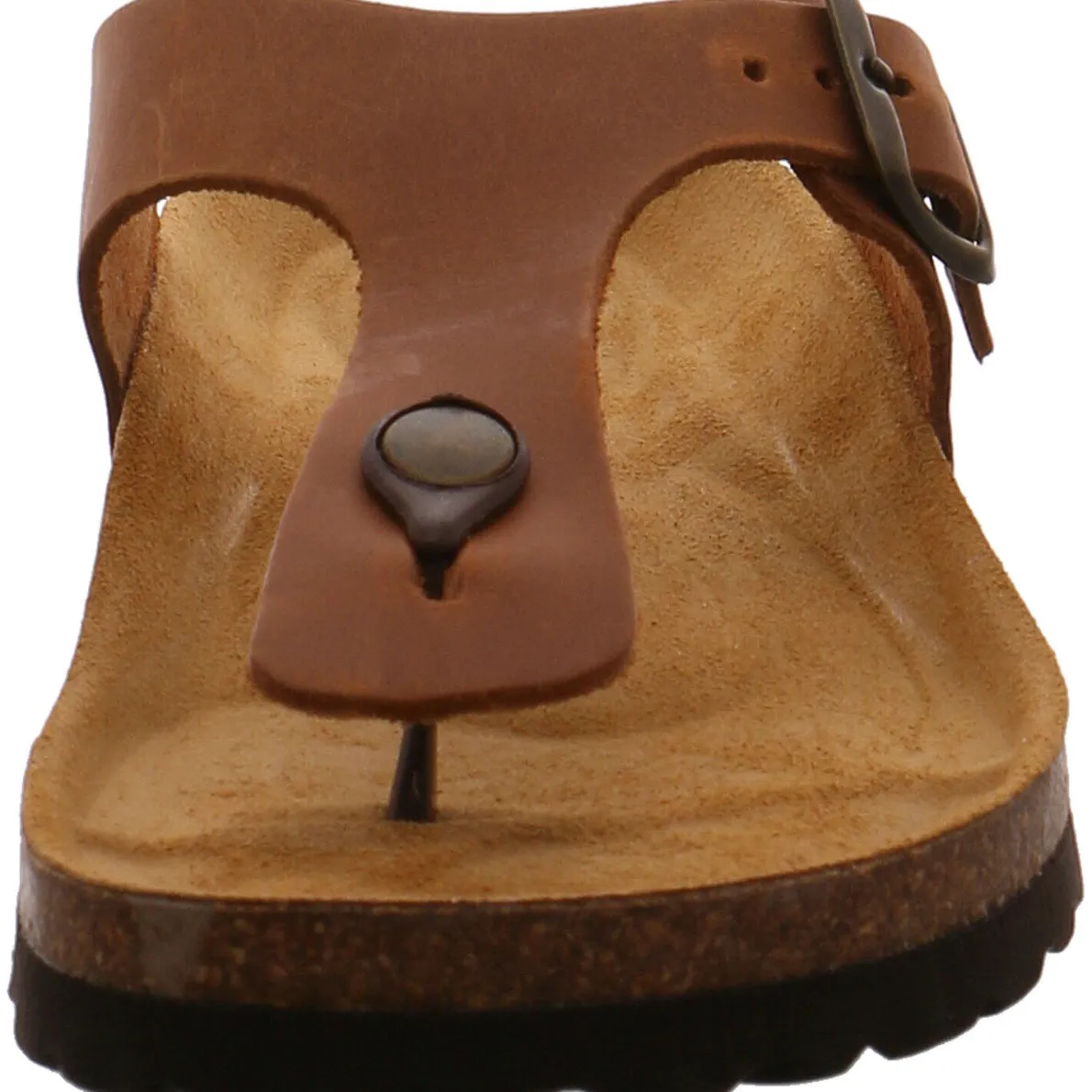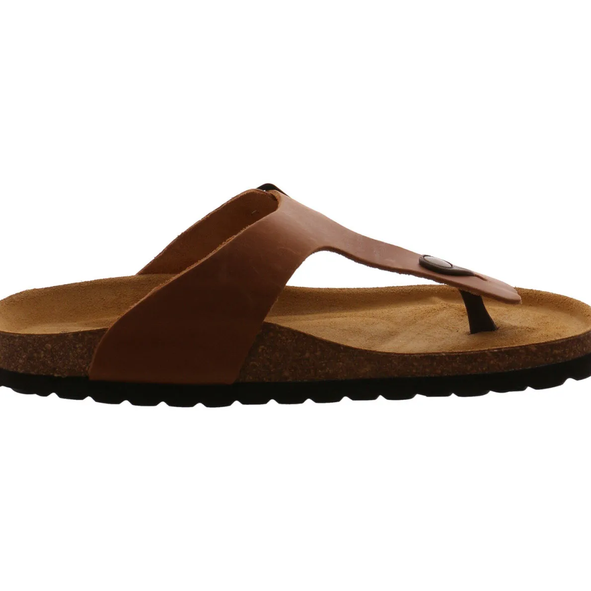 Gefertigt aus Echtleder in Braun und mit einem stylischen Zehentrenner Steg versehen macht der Schuh jeden Einsatz zuverlässig mit.