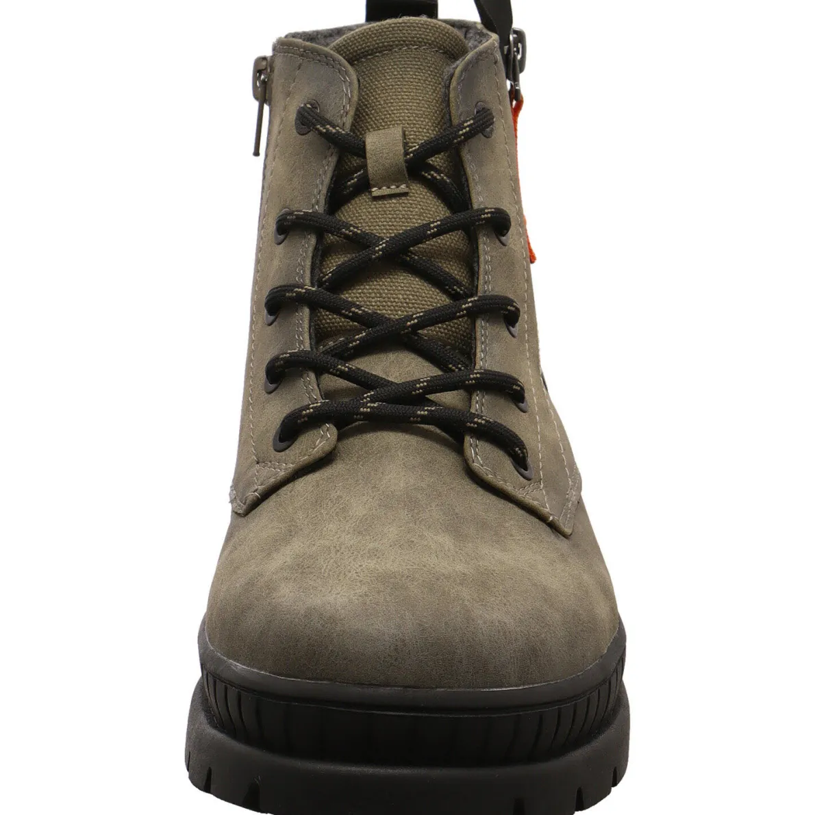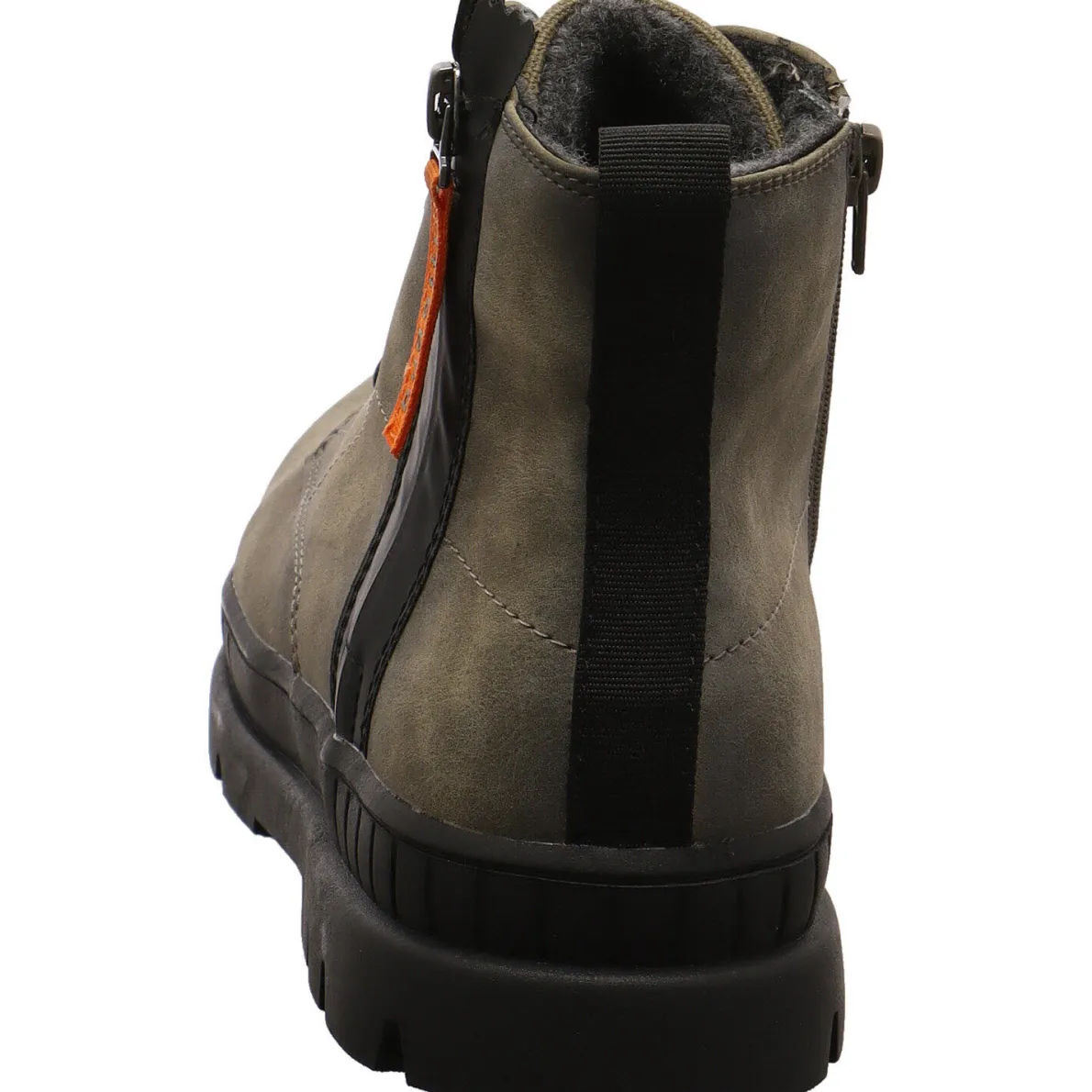 An der Außenseite wurde ein Zierzipper in Schwarz angebracht und mit einem Band in Orange versehen. Mit dem Textilband an der Rückseite vom Schaft und dem Reißverschluss auf der Innenseite ist ein leichter Einstieg möglich. Mit der Schnürung kannst du den Schuh optimal an deinen Fuß anpassen. Das Innenfutter ist angeraut, damit du auch an kalten Wintertagen warme Füße hast.