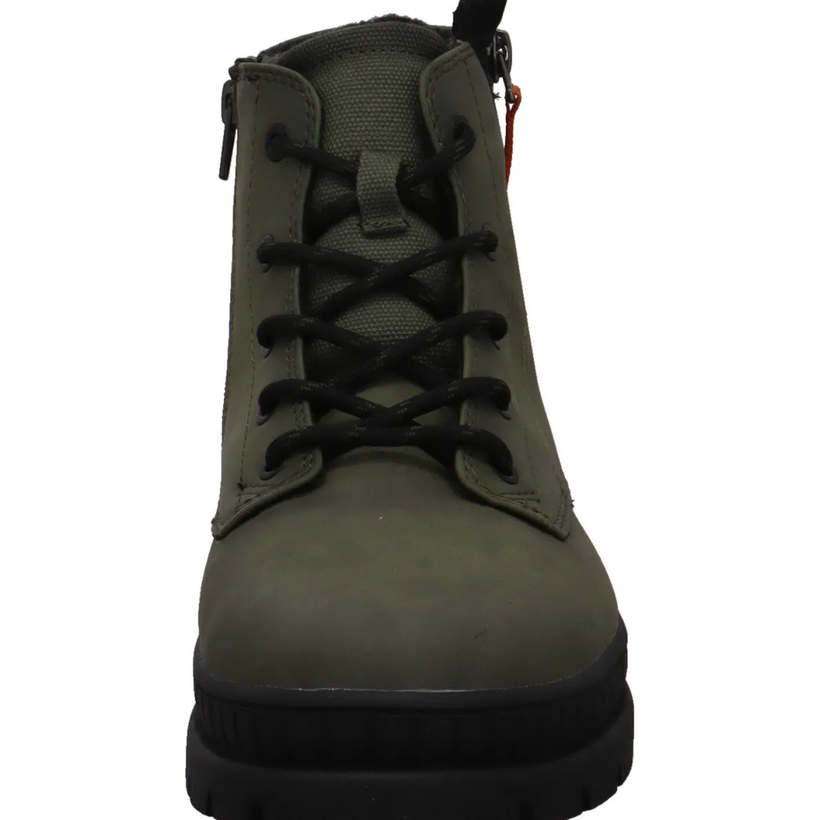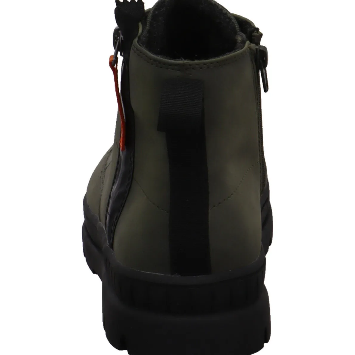 An der Außenseite wurde ein Zierzipper in Schwarz angebracht und mit einem Band in Orange versehen. Mit dem Textilband an der Rückseite vom Schaft und dem Reißverschluss auf der Innenseite ist ein leichter Einstieg möglich. Mit der Schnürung kannst du den Schuh optimal an deinen Fuß anpassen.