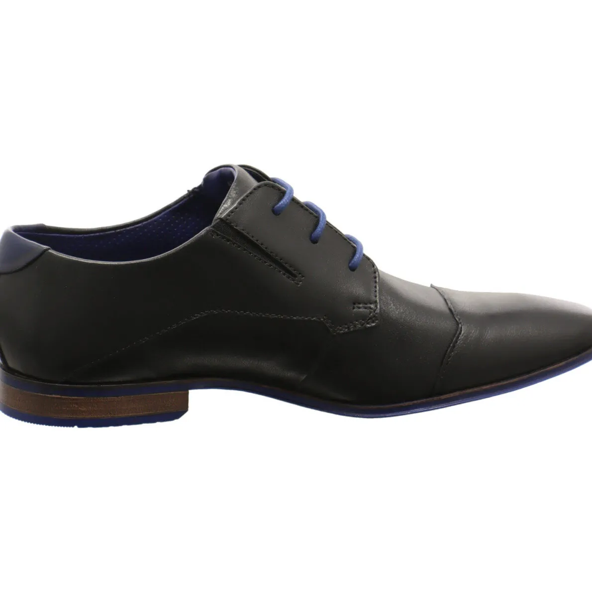 Das Obermaterial besteht aus hochwertigem Echtleder in Schwarz mit tollen Details in Royal Blau.