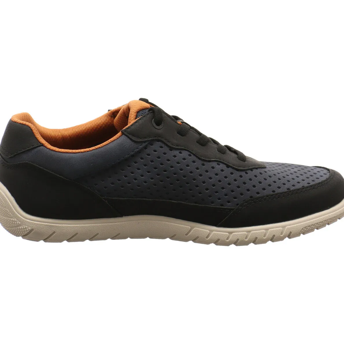 Das pflegeleichte Material aus Kunstleder und Textil in Blau ist mit kleinen Lasercuts versehen, diese sorgen für eine tolle Luftzirkulation auch an warmen Tagen. Der Schaft ist angenehm weich gepolstert und mit der Schnürung kannst du ihn auf deine Bedürfnisse anpassen. Das Innenfutter ist am Einstieg Orange abgesetzt und ein Hingucker. So kannst du ihn auch super mit einer kurzen Hose kombinieren. Die Laufsohle ist Weiß und runden den sommerlich, leichten Look perfekt ab.