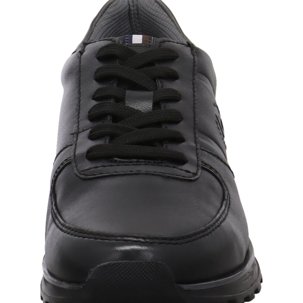 Gefertigt aus hochwertigem Echtleder in Schwarz passt er perfekt zu jedem Outfit. Der Einsatz an der Ferse in Grau ist ein Hingucker.