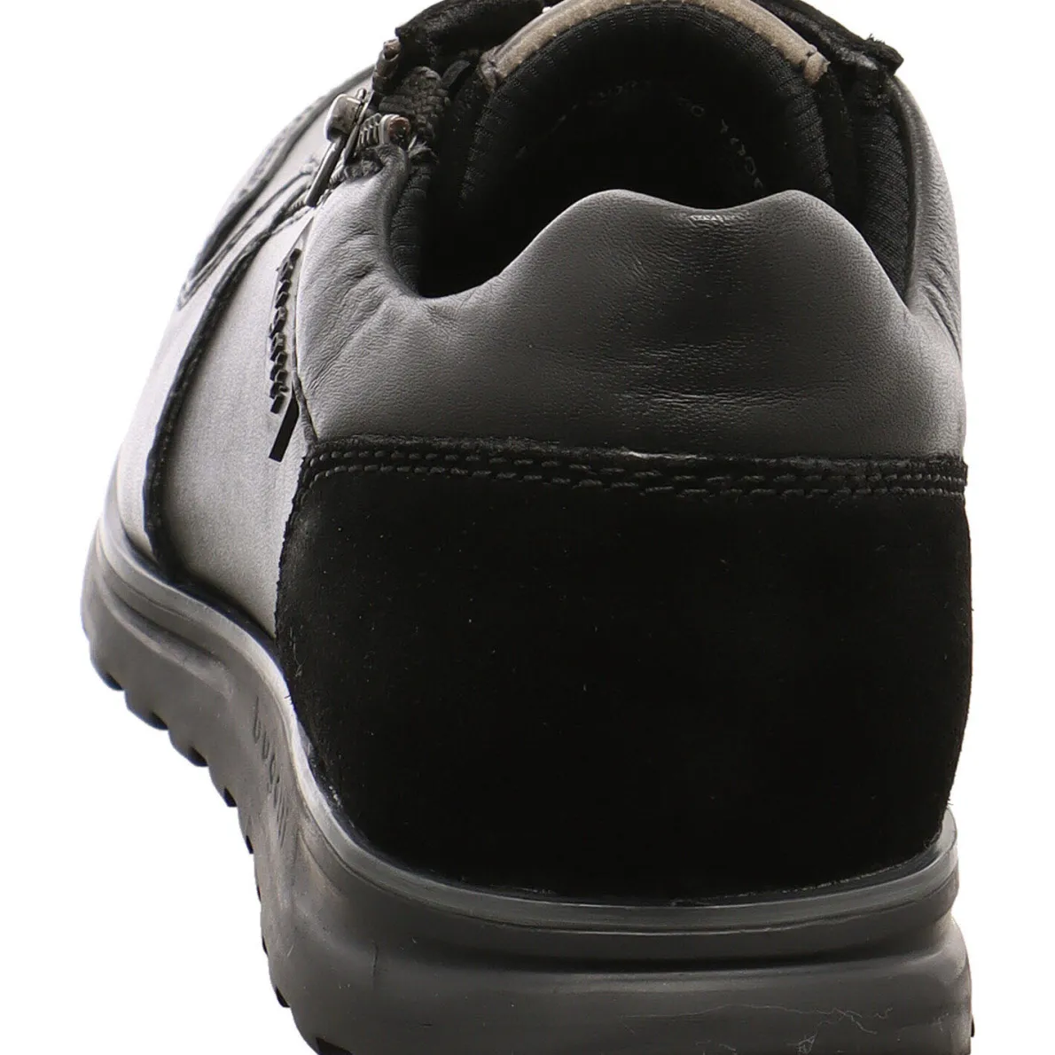 Gefertigt aus hochwertigem Echtleder in Schwarz , passt er perfekt zu jedem Outfit. Der Einsatz an der Ferse aus Veloursleder ist dabei ein Hingucker. Durch den seitlichen Reißverschluss kommst du ganz leicht in den Schuh und mit der Schnürung kannst du die Passform optimieren. Der Schaft ist angenehm weich gepolstert und die Innensohle als Wechselfußbett gearbeitet. So können auch eigene Einlagen verwendet werden. Die Laufsohle hat einen guten Grip und passt durch ihre Linienführung super zum Look.