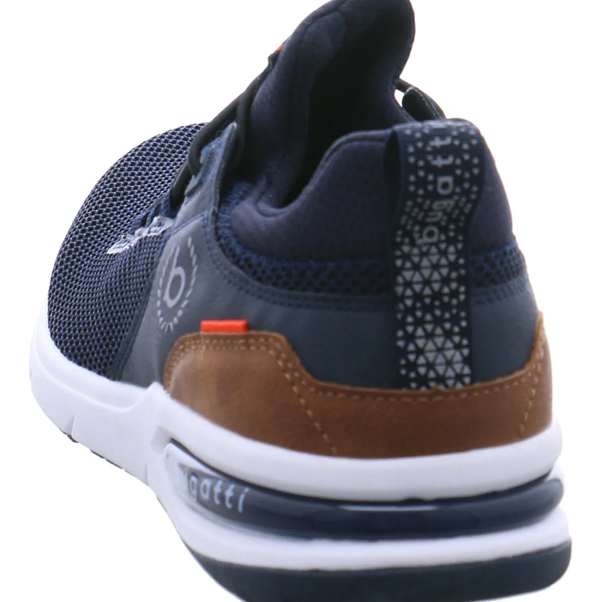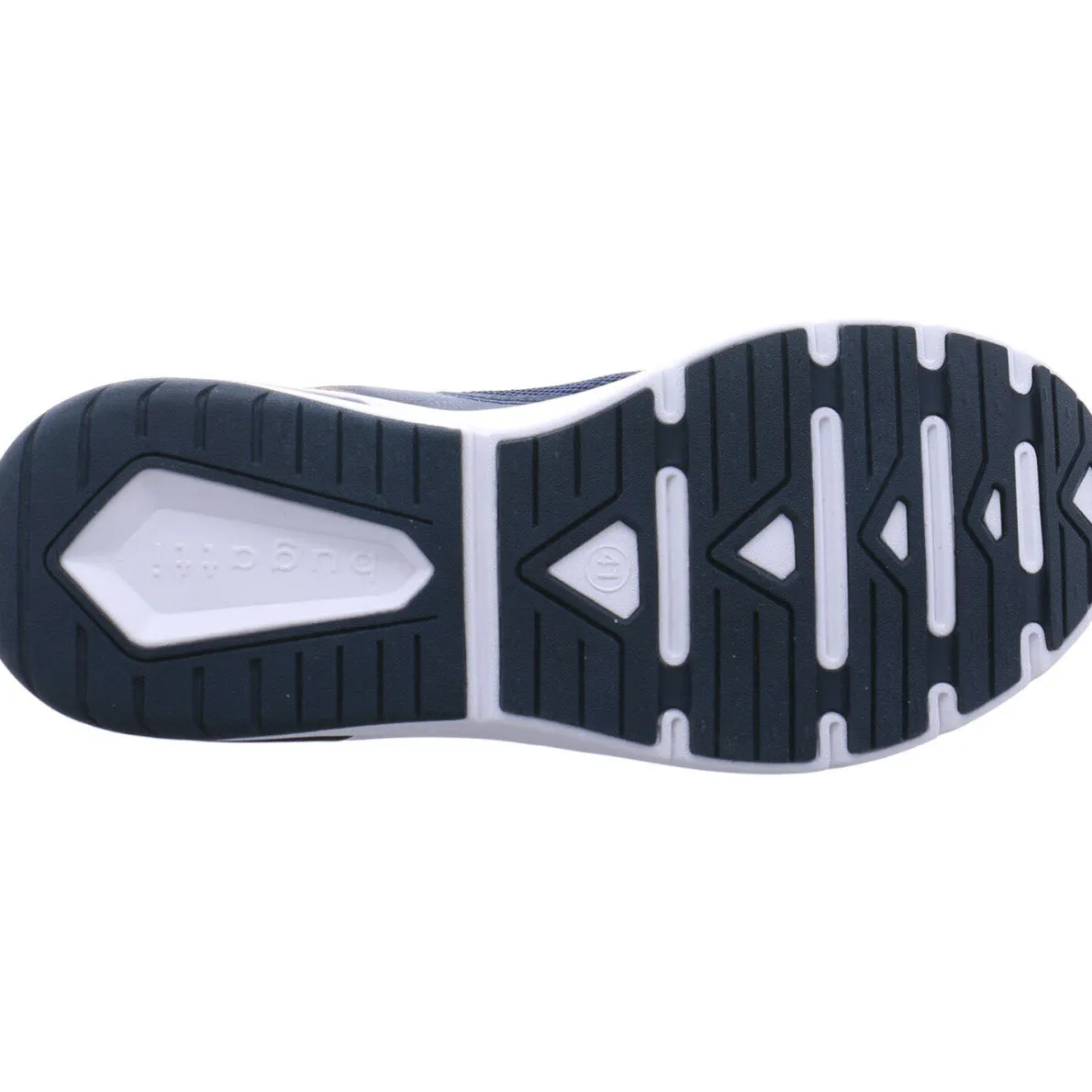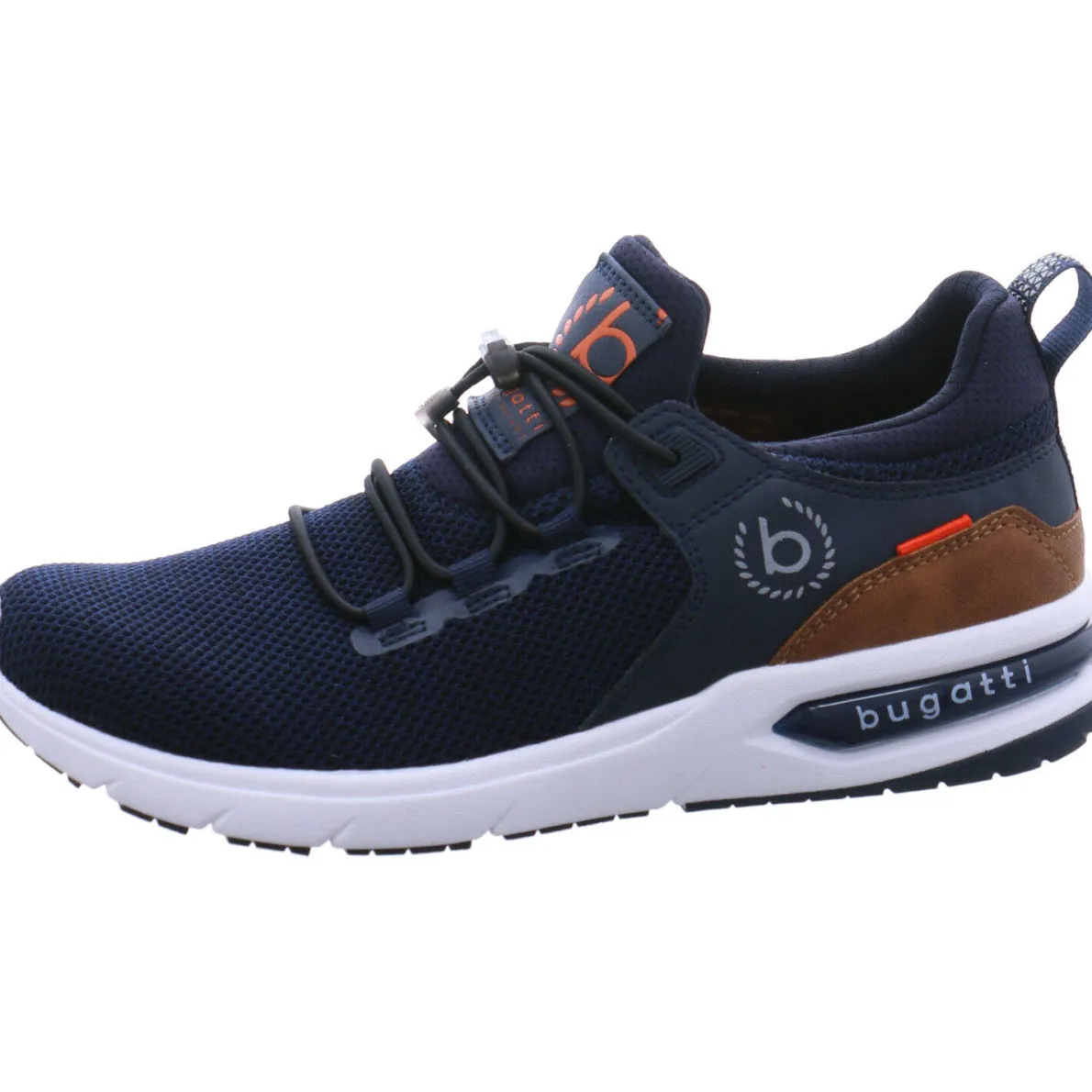 Sportlich und modern präsentiert sich dieser Herren Sneaker aus dem Hause Bugatti. Der sportive Schnürer wurde in einem Mix aus Kunstleder und luftigem Mesh in Dunkelblau gefertigt und mit auffallenden Highlights in leuchtendem Orange versehen.