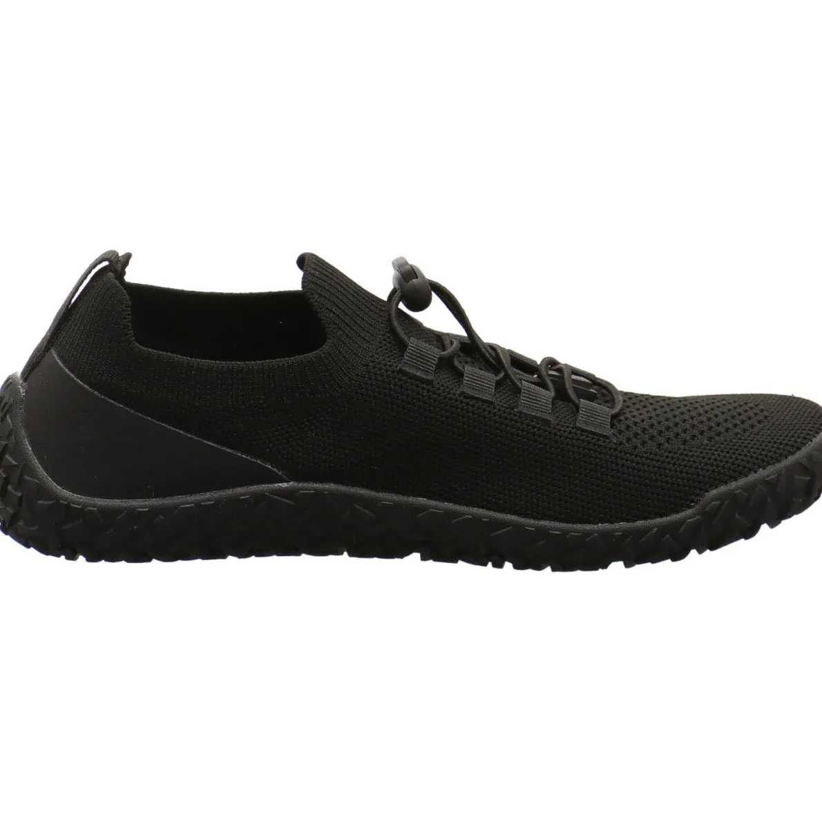 Das textile Obermaterial in Schwarz ist flexibel und atmungsaktiv und die Innensohle ist herausnehmbar. Damit verfügt der Sneaker über kein Fußbett mehr und vermittelt ein tolles Barefoot Feeling.