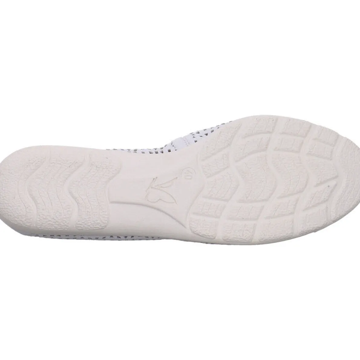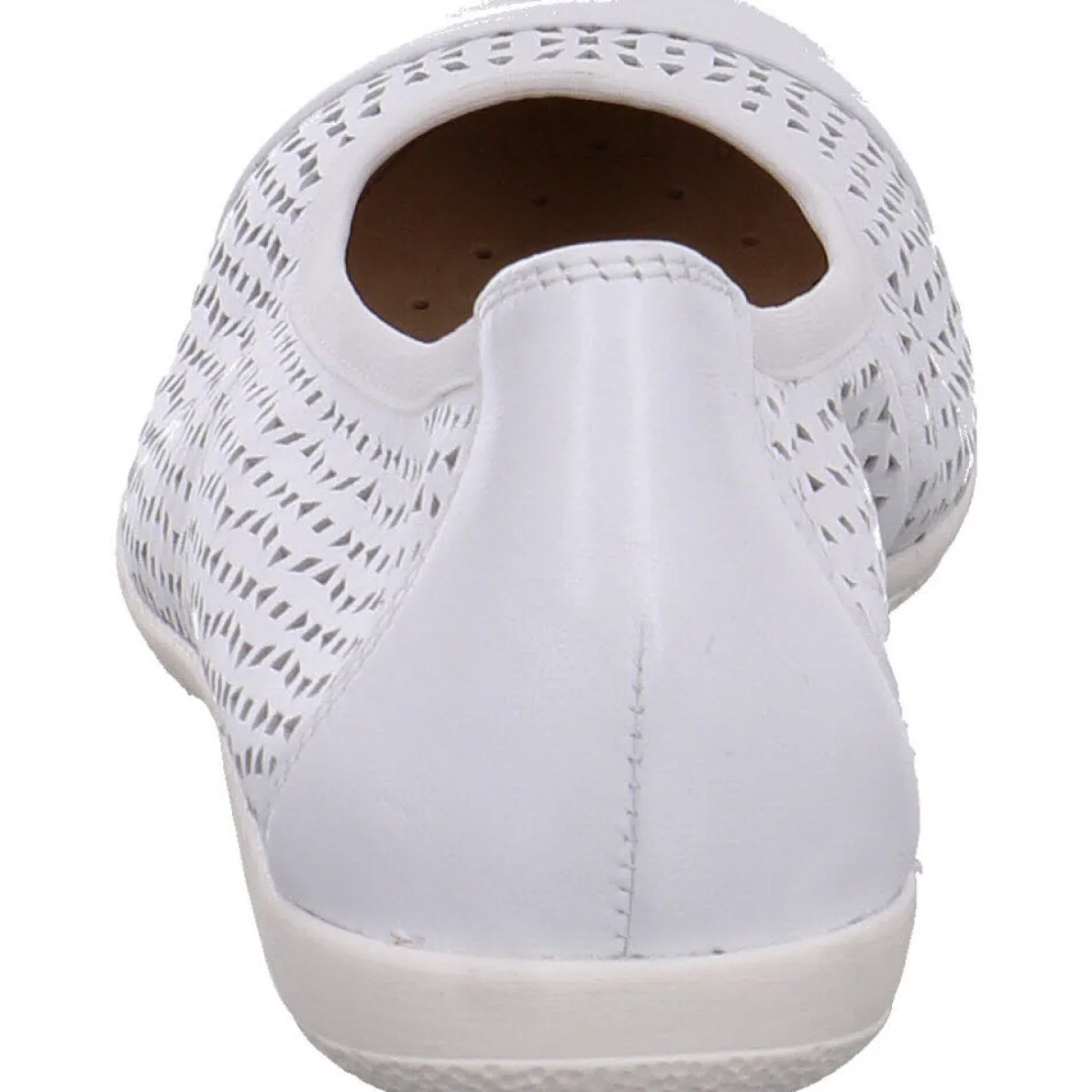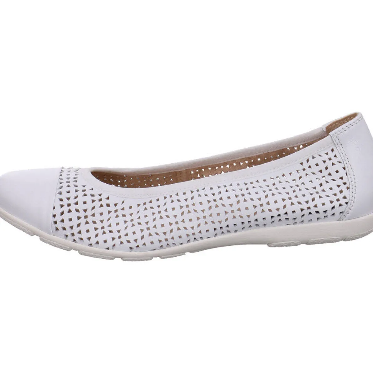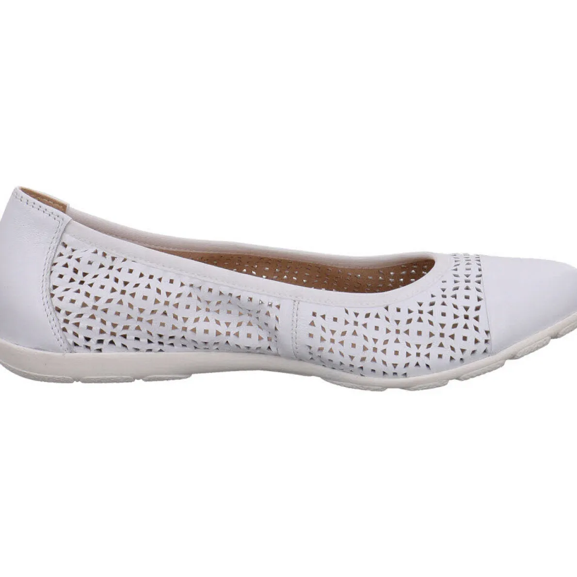 Dieser sommerliche Damen Ballerina von Caprice aus Leder in der Farbe Weiß fällt vor allem durch die angesagten Laser Cutouts ins Auge, die nicht nur schick aussehen, sondern außerdem für eine perfekte Luftzirkulation sorgen. Eine optimale Klimaregulierung und eine gute Auftrittsdämpfung ermöglicht die Innensohle aus Echtleder. Ein femininer Schuh, der zu beinahe jedem Outfit kombinierbar ist und dich zuverlässig durch den Sommer begleitet.