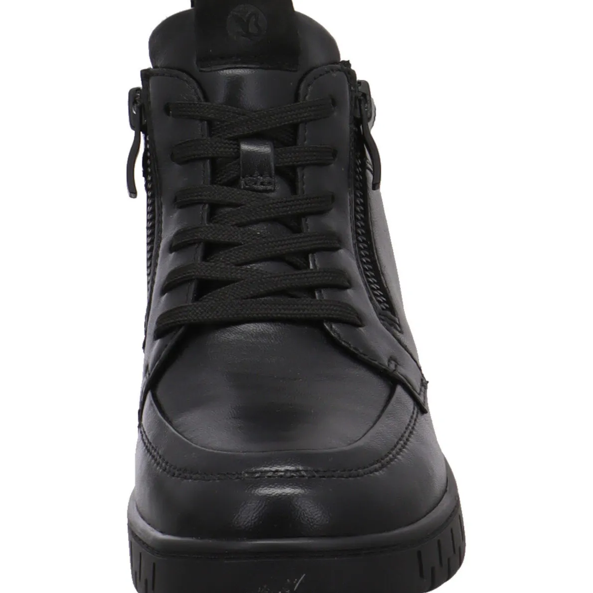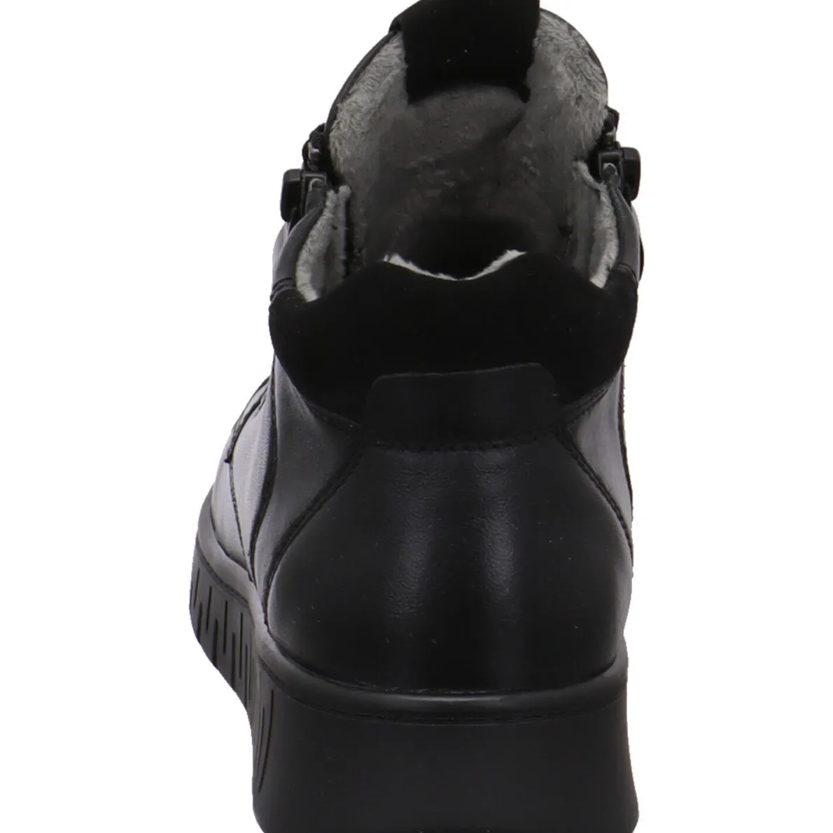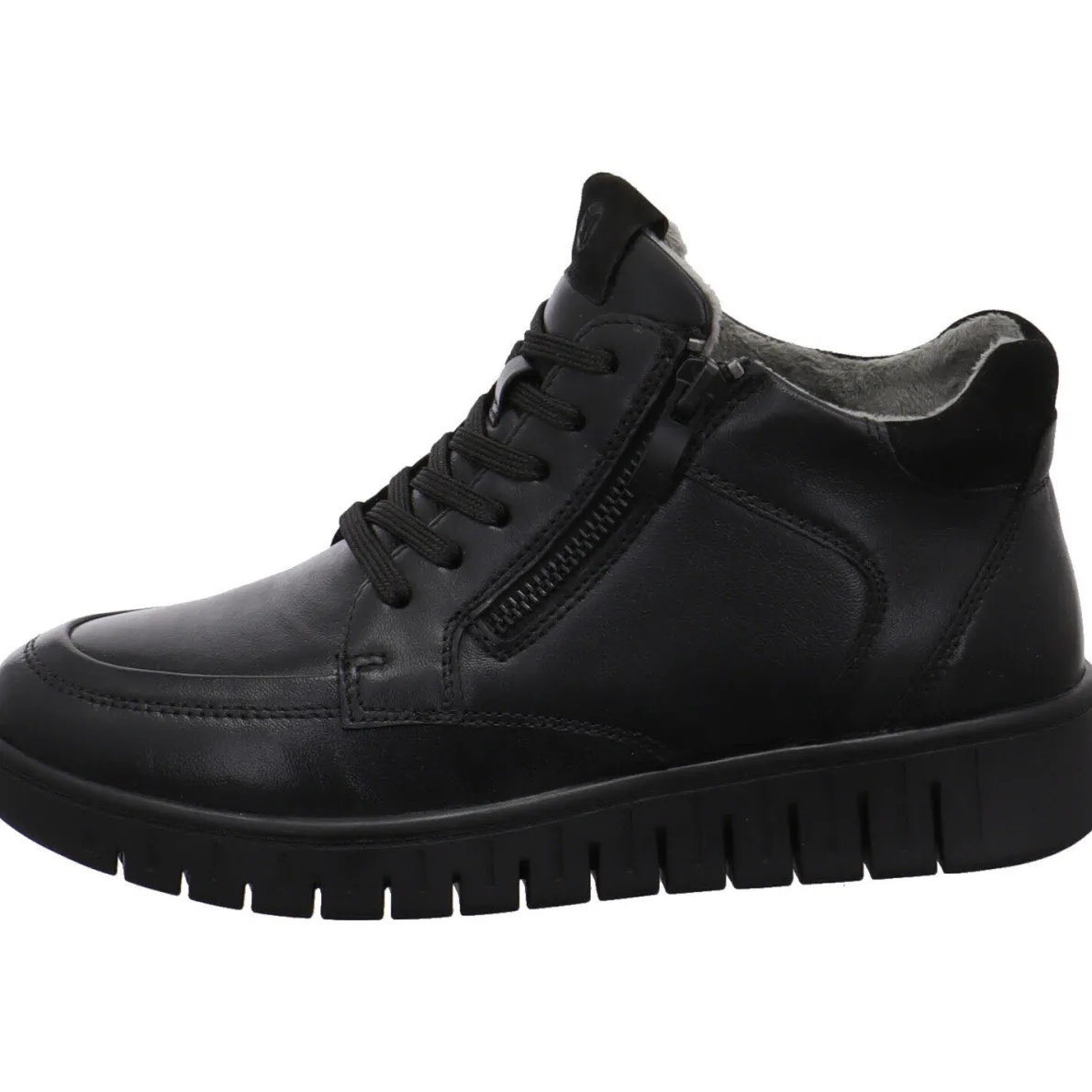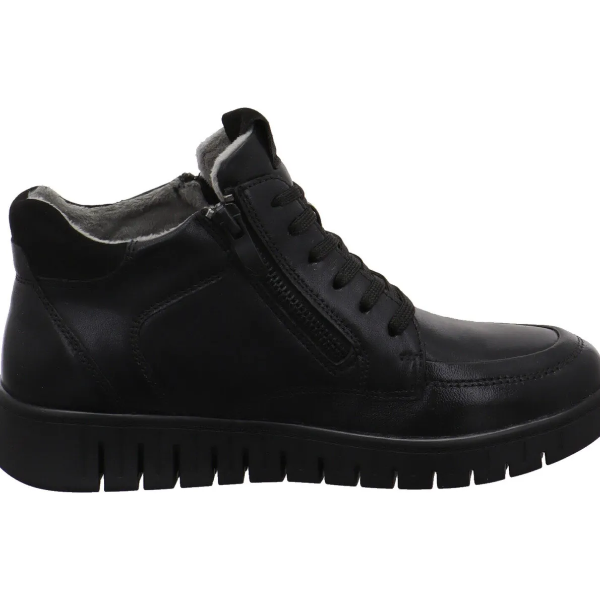 Sie wurde aus hochwertigem Echtleder in Schwarz gefertigt. Durch den doppelten Reißverschluss ist das An- und Ausziehen ganz einfach. Mit der Schnürung kannst du ihn optimal an eine Bedürfnisse anpassen. Der Schaft ist angenehm gepolstert und auch das flauschige Innenfutter, sorgt für warme Füße und das Plus an Komfort. Die weiche Climotion Innensohle ist als Wechselfußbett gearbeitet. So kannst du eigene Einlagen verwenden oder eine Thermosohle. Die Stiefelette ist in Weite H gearbeitet und bietet dem Fuß deutlich mehr Platz.