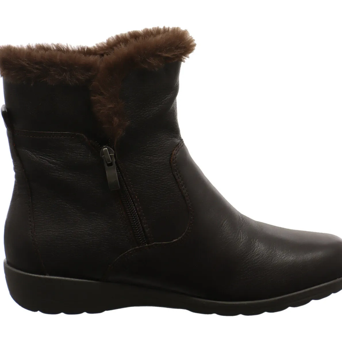 Dieser sportliche Damen Stiefel von Capice wurde aus hochwertigem genarbtem Echtleder in dunklem Braun gefertigt.