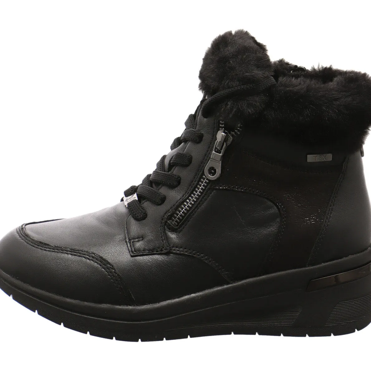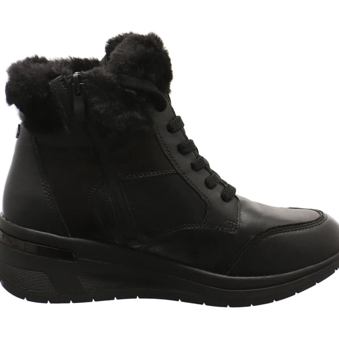 Mit dem komfortablen Damen Winterstiefel von Caprice bleiben keine Wünsche offen. Er wurde aus geschmeidigem Echtleder in Schwarz gefertigt. Hingucker sind dabei die Textil Plüschkante am Schaft und schimmernde Einsätze. Dieser Schuh ist angenehm zu tragen und durch den seitlichen Reißverschluss, der Schnürung und dem daneben liegenden Reißverschluss ist der Einstieg besonders einfach und der Schuh kann individuell an den Fuß angepasst werden. Im Schuh ist ein Wechselfußbett eingearbeitet, welches auch perfekt durch eigene Einlagen ersetzt werden kann.