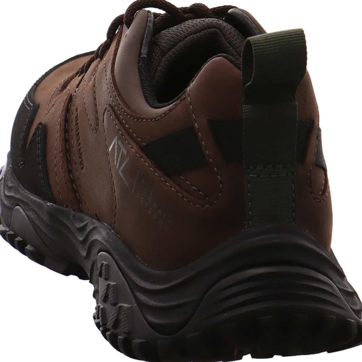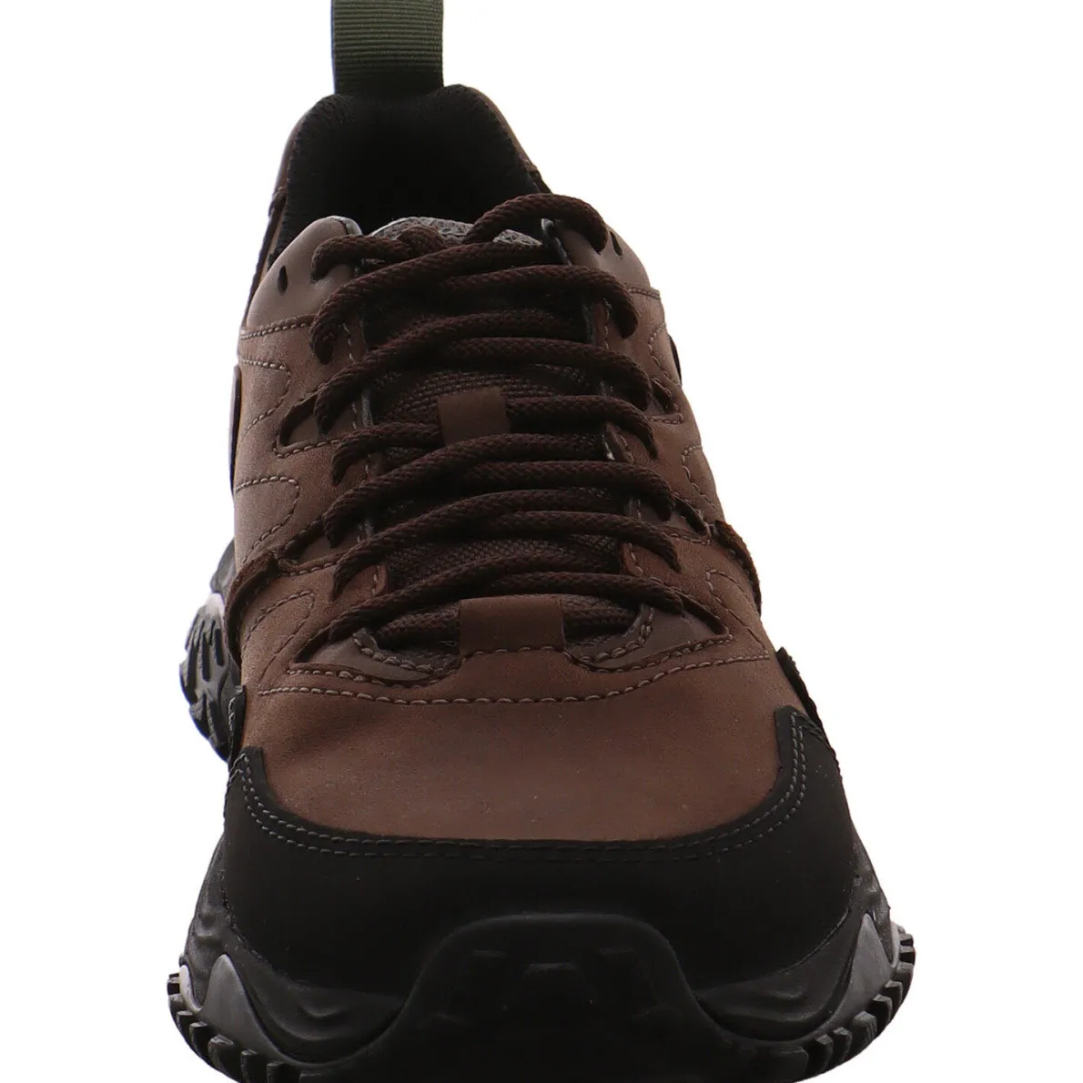 Der ATL Walk Go WP von Clarks ist ein Herren Schnürschuh aus einem Mix aus Echtleder in Braun und Synthetik Einsätzen in Schwarz. Die gezielt eingesetzten tonalen Ziernähte geben dem Schnürschuh einen sportlichen Look. Für absoluten Tragekomfort sorgen der leicht gepolsterte Schaftrand und die anpassungsfähige Innenausstattung. Die Innensohle ist als Wechselfußbett gearbeitet, was das Tragen eigener Einlagen möglich macht. Der Schuh ist wasserdicht und somit perfekt für jegliche Outdooraktivitäten geeignet. Die Lasche am Schaftrand hilft bei einem leichten Einstieg.