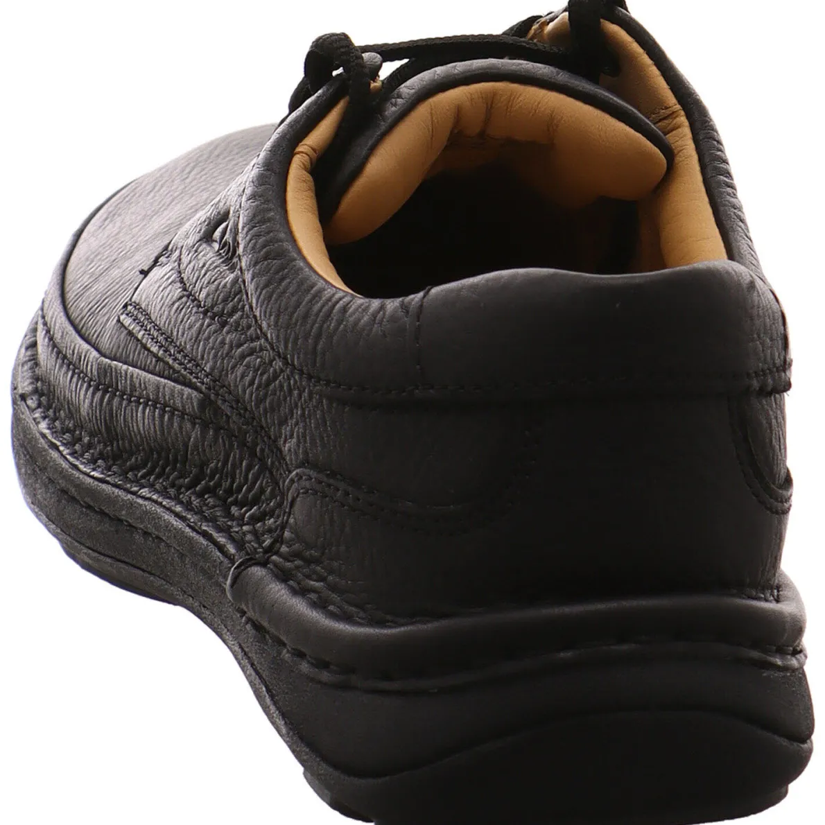 Der Nature Three von Clarks ist ein Herren Schnürschuh aus genarbtem Echtleder in Schwarz. Die gezielt eingesetzten tonalen Ziernähte geben dem Schnürschuh einen sportlichen Look. Für absoluten Tragekomfort sorgen der leicht gepolsterte Schaftrand, die anpassungsfähige Innenausstattung aus Leder und die Extreme Comfort Technologie mit Active Air Sohle.