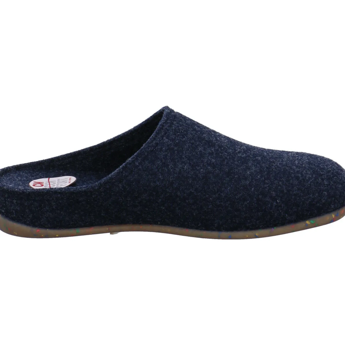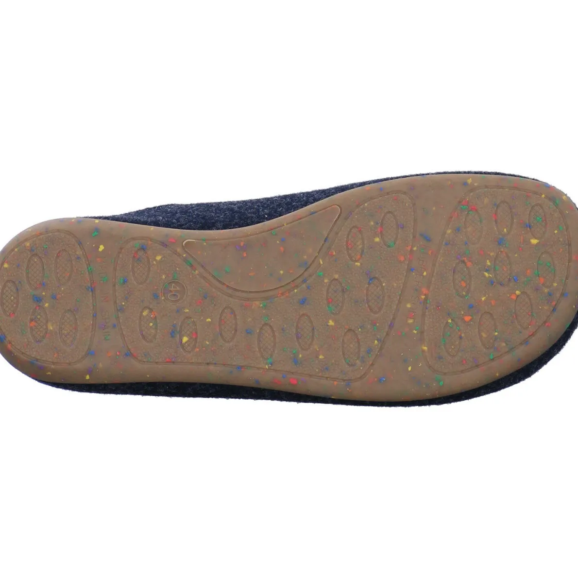 Der Schuh in Blau wurde aus Recyceltem Polyester aus PET Flaschen gefertigt und das Obermaterial hat die Haptik von Filz. Durch das Wechselfußbett eignet er sich auch wunderbar für lose Einlagen. Die Gummisohle beigestert durch Ihre Bunten Einschlüsse und gibt perfekten Halt, so kommen Sie auch auf glatten Böden nicht ins Rutschen.