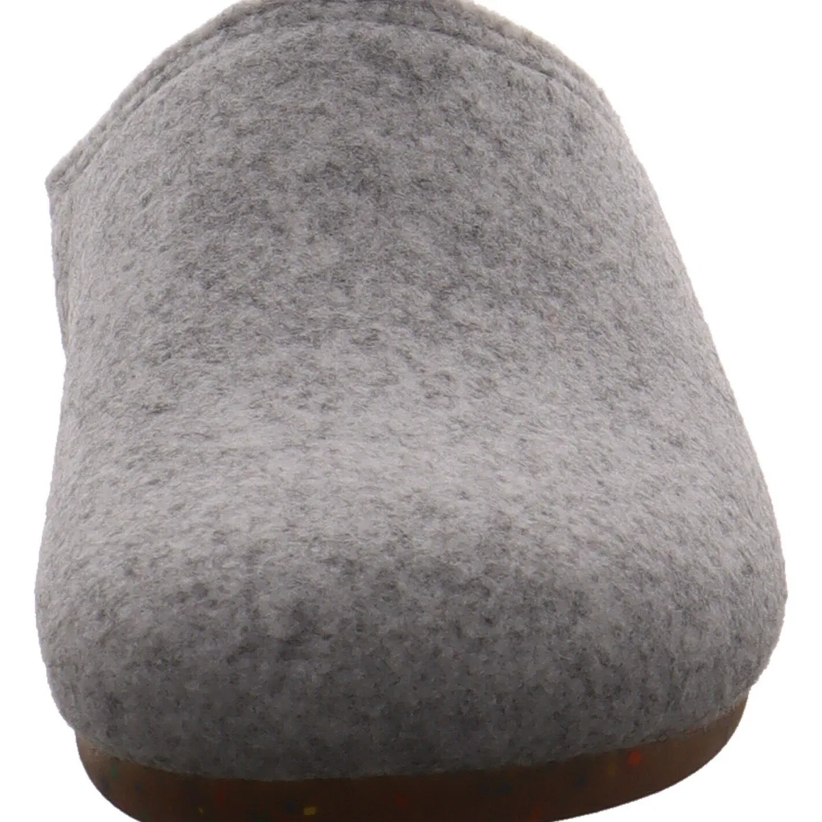 Das Obermaterial aus recycelten PET Flaschen, in Grau, hat die Haptik von Filz. Durch das Wechselfußbett eignet er sich auch wunderbar für lose Einlagen. Die Gummisohle aus recycelten PET Flaschen, begeistert durch ihre Bunten Einschlüsse und gibt perfekten Halt, so kommst du auch auf glatten Böden nicht ins Rutschen.