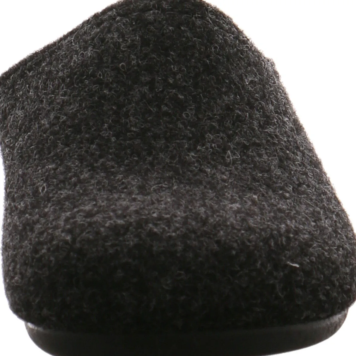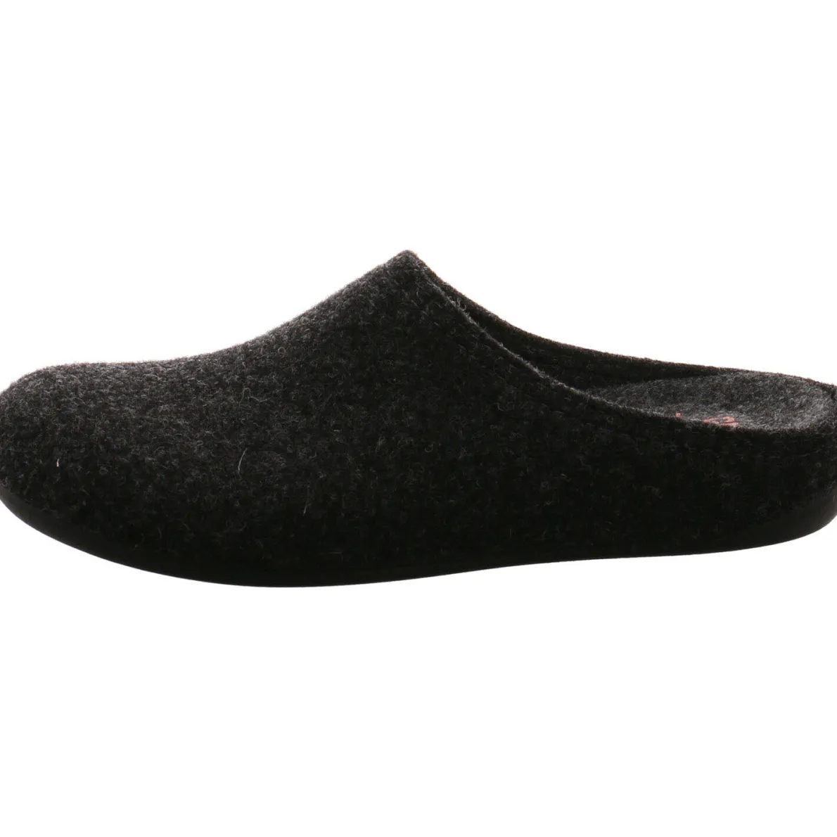Das Obermaterial aus recycelten PET Flaschen, in Schwarz, hat die Haptik von Filz. Durch das Wechselfußbett eignet er sich auch wunderbar für lose Einlagen. Die Gummisohle begeistert durch ihre Bunten Einschlüsse und gibt perfekten Halt, so kommst du auch auf glatten Böden nicht ins Rutschen.