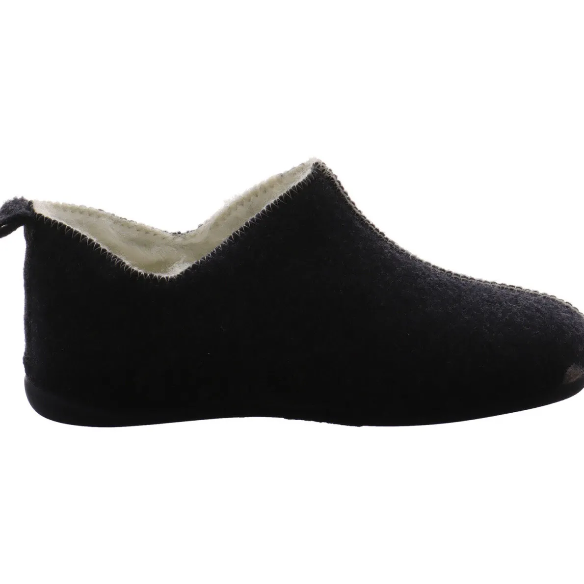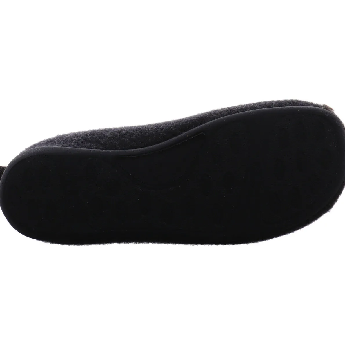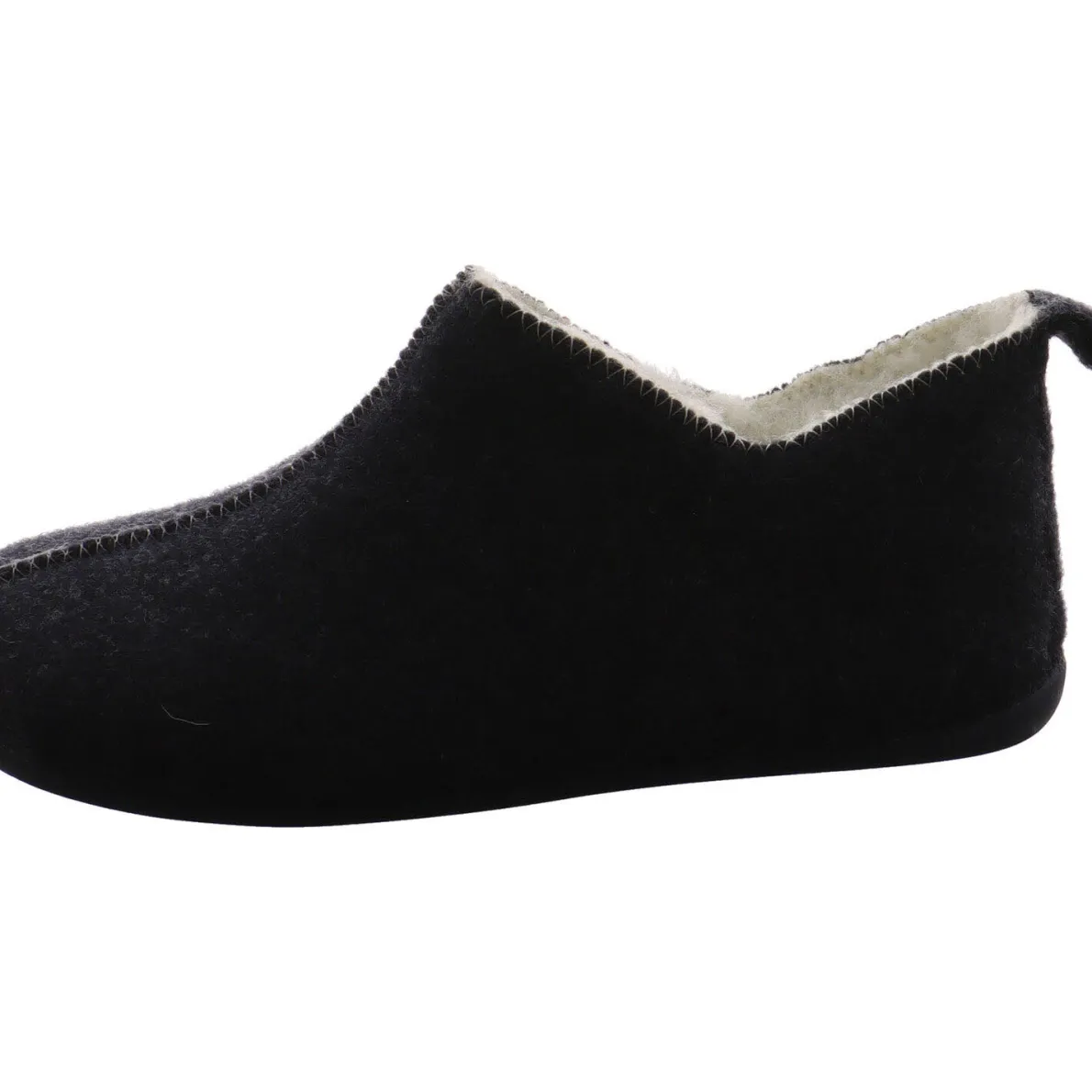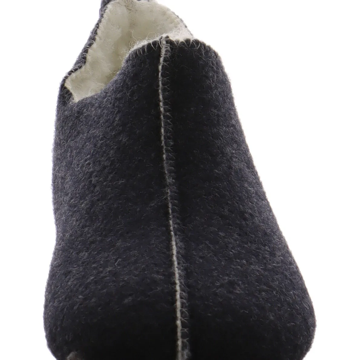 Das Obermaterial aus Textil Filz macht den Schuh robust und langlebig. Dabei sorgt das flauschige Innenfutter für warme Füße. Helle Ziernähte und das helle Innenfutter geben einen tollen Kontrast und verpassen dem Hausschuh einen modernen Look. Durch die Innensohle als Wechselfußbett eignet er sich auch für eigene Einlagen. Die Schnittführung sorgt für perfekten Halt am Fuß.