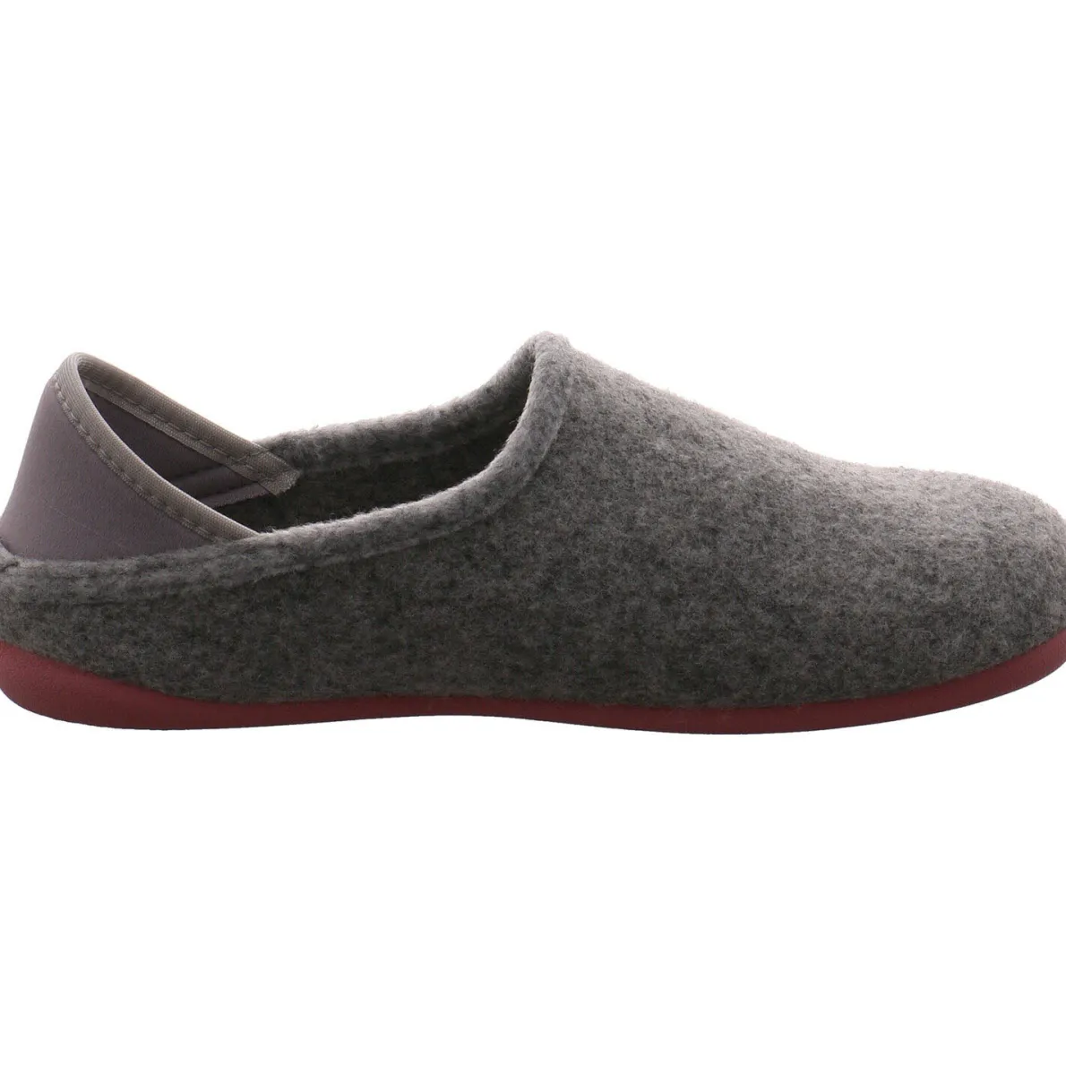 Dieser Damen Hausschuh von Dinamic in Grau wurde aus Recyceltem Polyester aus PET Flaschen gefertigt und das Obermaterial hat die Haptik von Filz. Ein kleiner elastischer Einsatz an der Ferse gibt dem Fuß einen festen Halt und dennoch die Bequemlichkeit einer Pantolette.