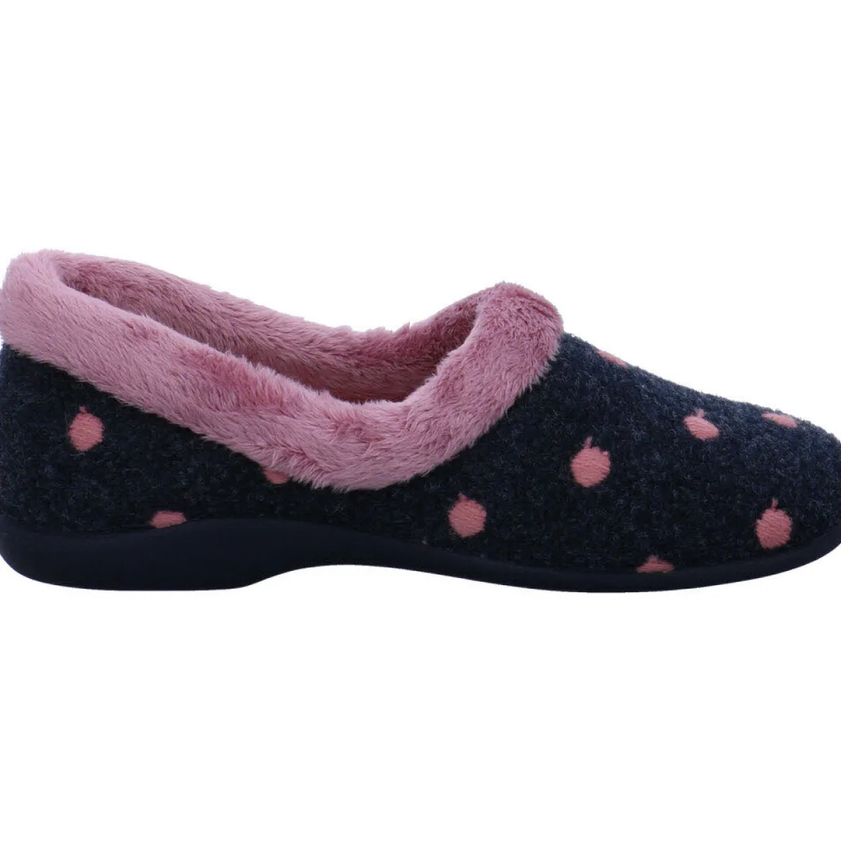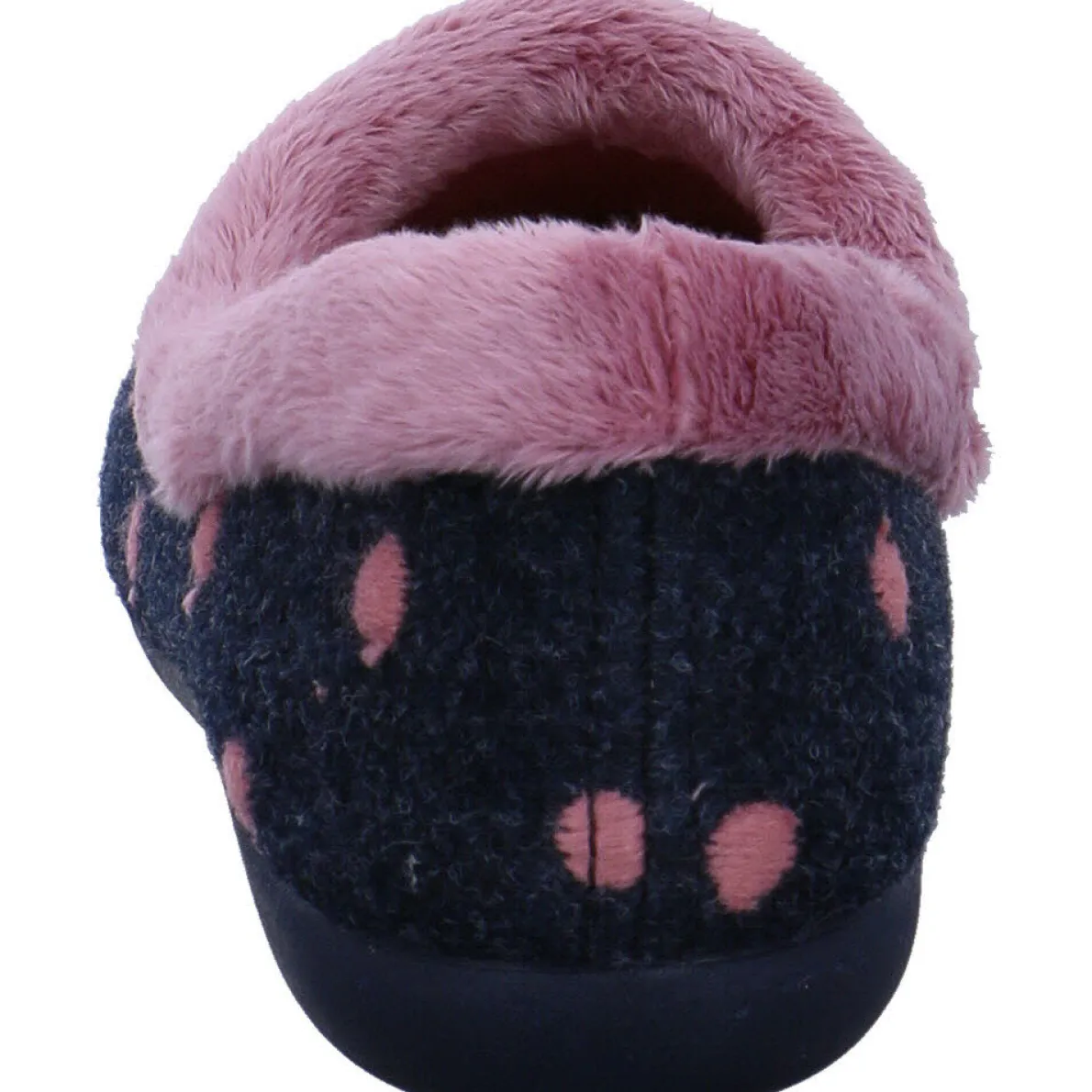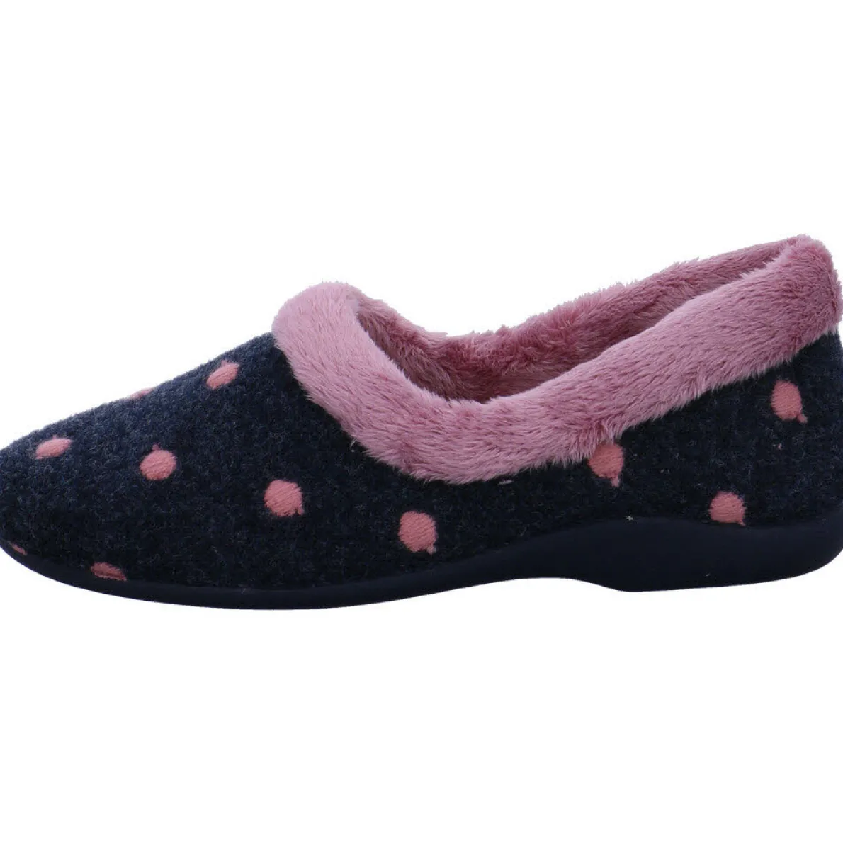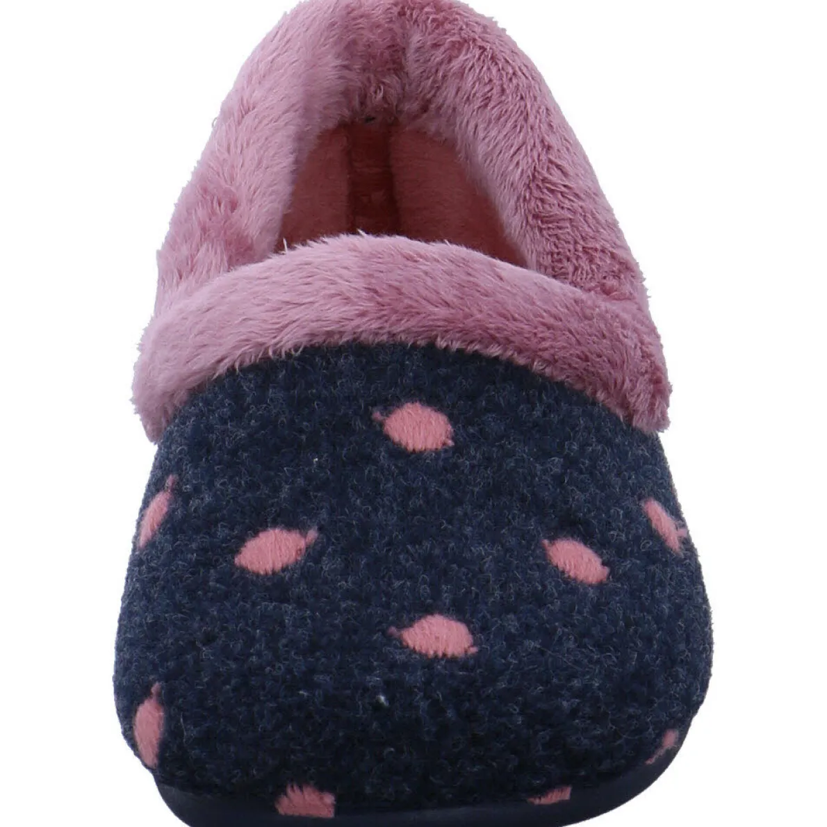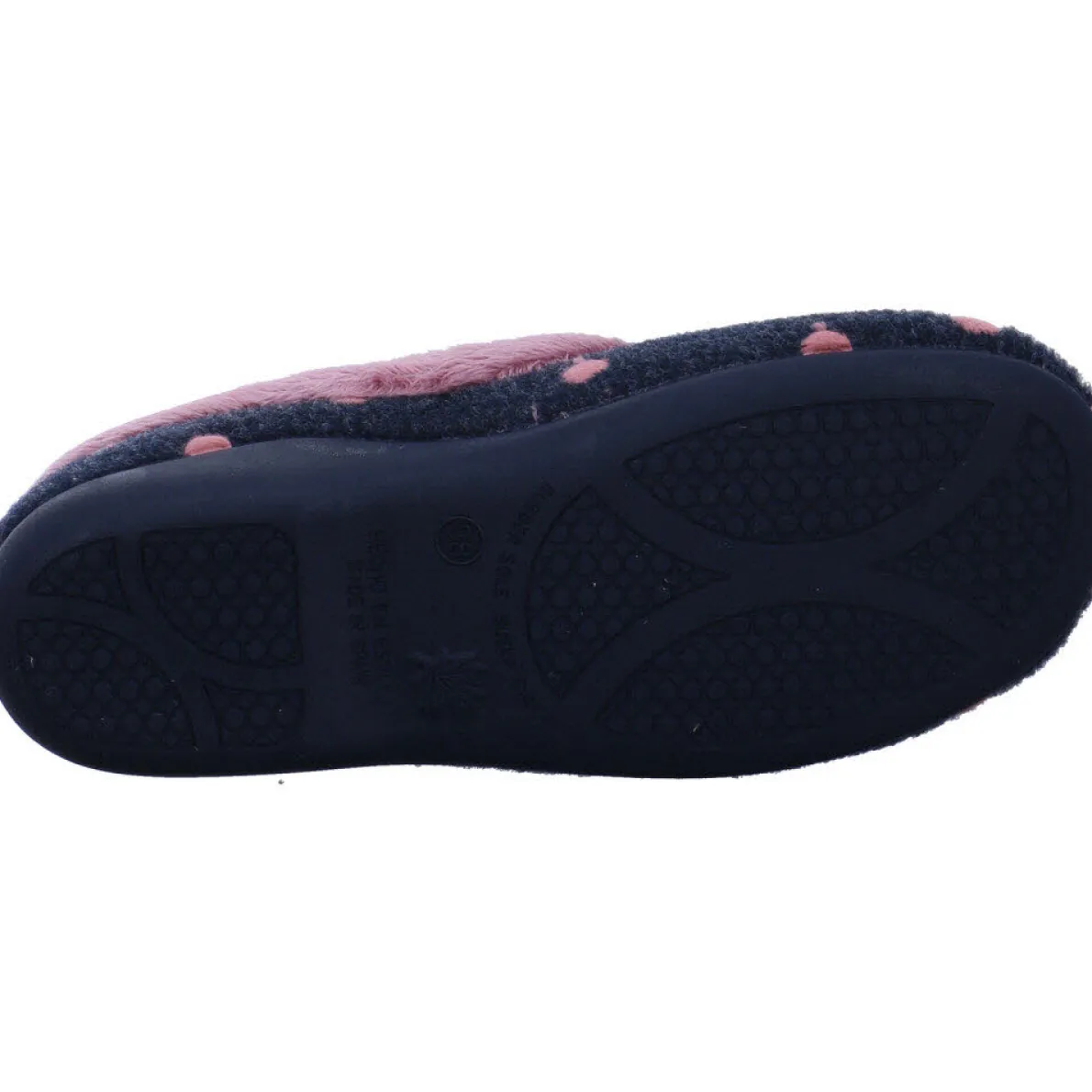 Dieser mollig warme Damen Hausschuh des spanischen Herstellers Dinamic aus Textil in Blau mit süßen Punkten in Rosa ist der perfekte Begleiter für entspannte Stunden in Ihrem Zuhause.