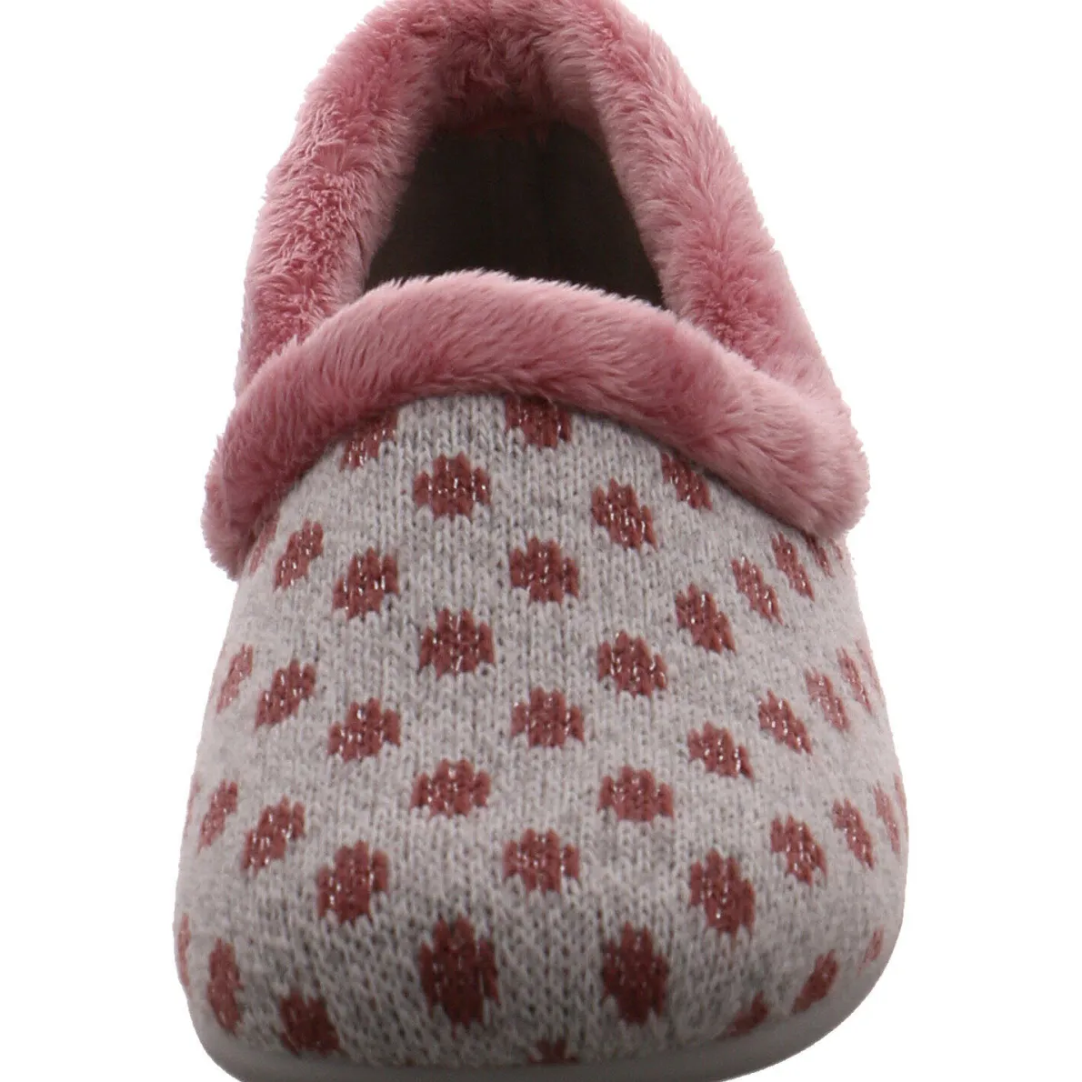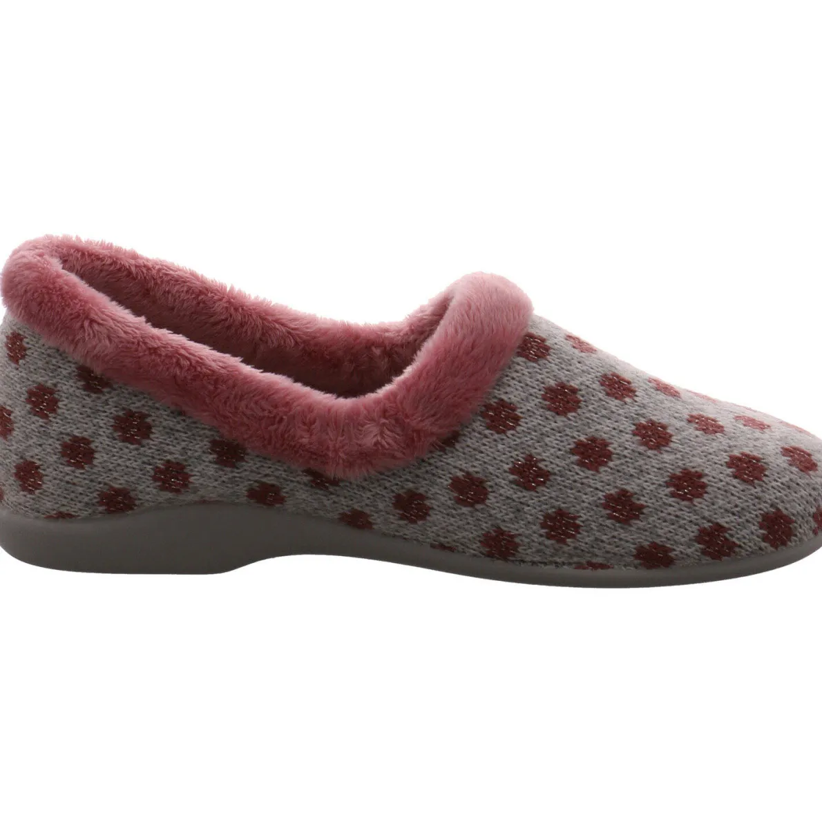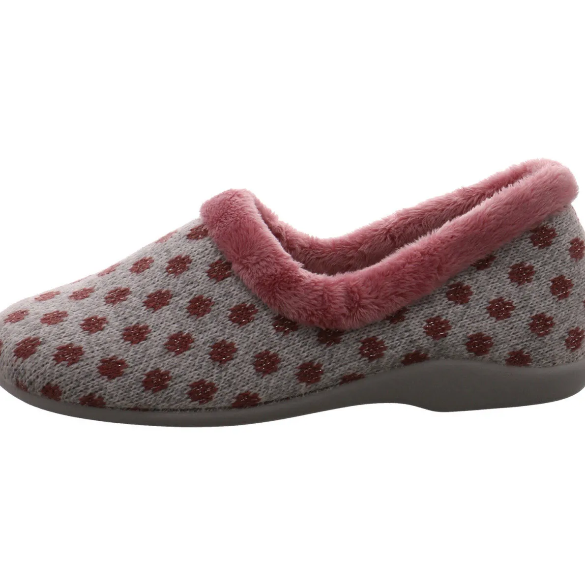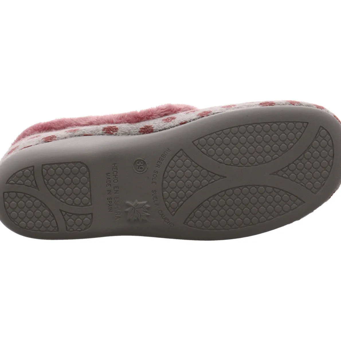 Dieser mollig warmen Damen Hausschuh des spanischen Herstellers Dinamic aus Textil in Grau mit süßen Punkten in Rosa mit Glitzer, sind perfekte Begleiter für entspannte Stunden in deinem Zuhause.