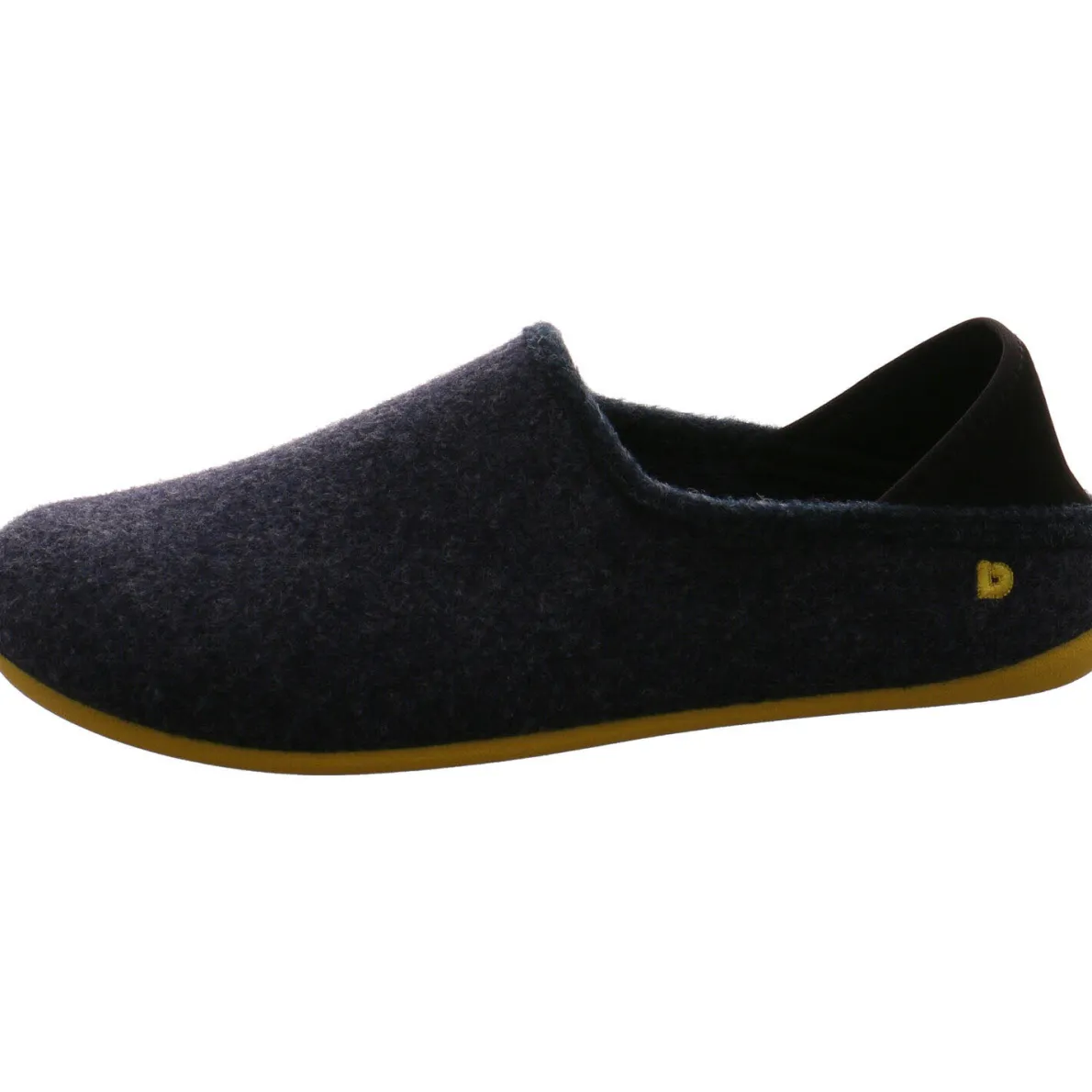 Dieser Herren Hausschuh von Dinamic in Blau wurde aus Recyceltem Polyester aus PET Flaschen gefertigt und das Obermaterial hat die Haptik von Filz. Ein kleiner elastischer Einsatz an der Ferse gibt dem Fuß einen festen Halt und dennoch die Bequemlichkeit einer Pantolette. Ein absoluter Hingucker ist die Laufsohle in Gelb und das Markenlogo als Stickerei an der Außenseite.