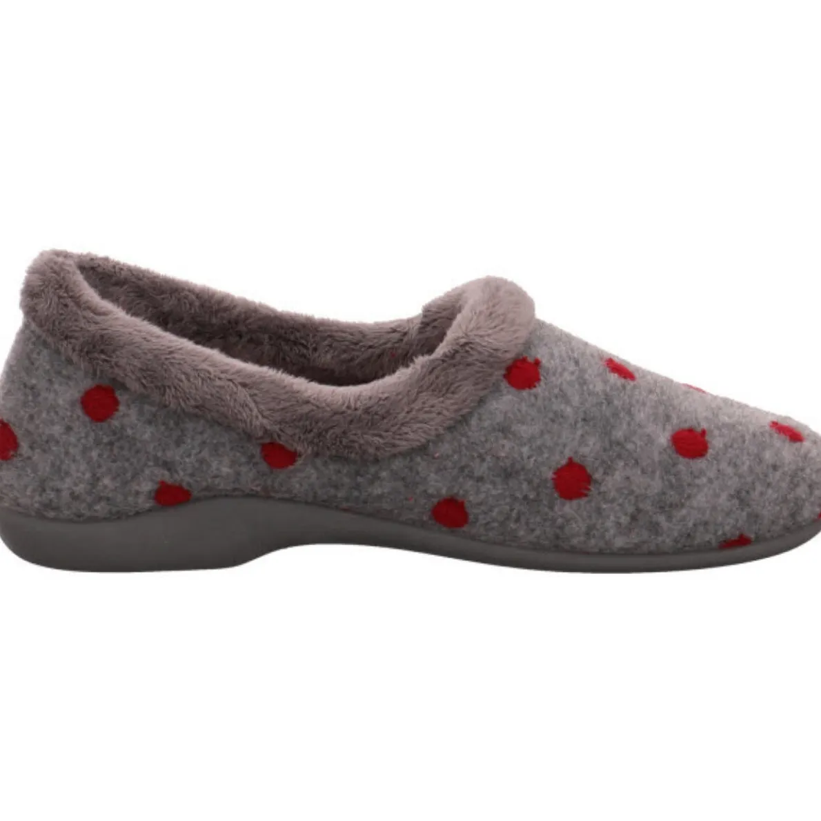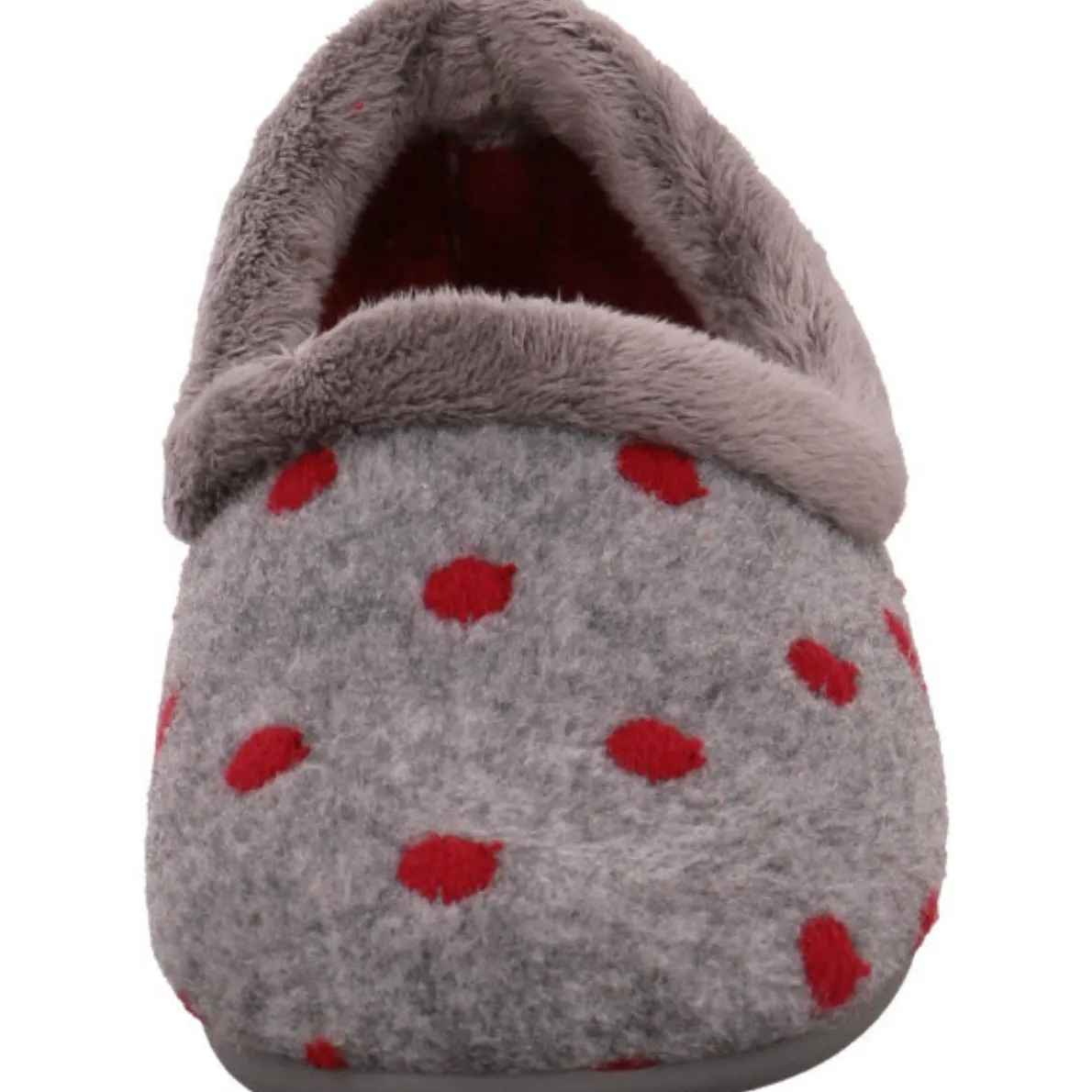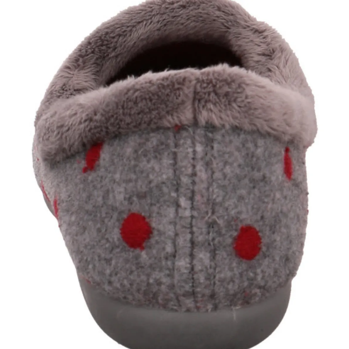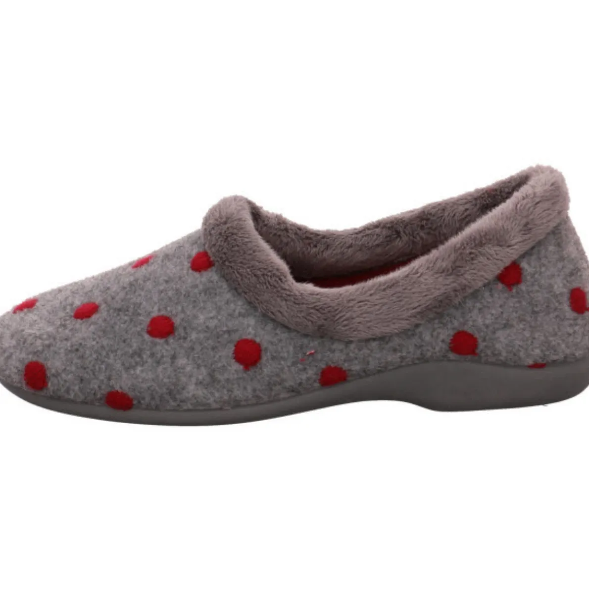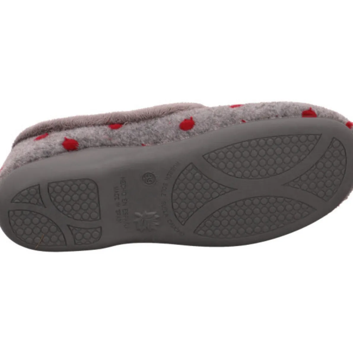 Diese mollig warmen Damen Hausschuhe des spanischen Herstellers Dinamic aus Textil in grau mit süßen Punkten in Pink sind perfekte Begleiter für entspannte Stunden in Ihrem Zuhause.