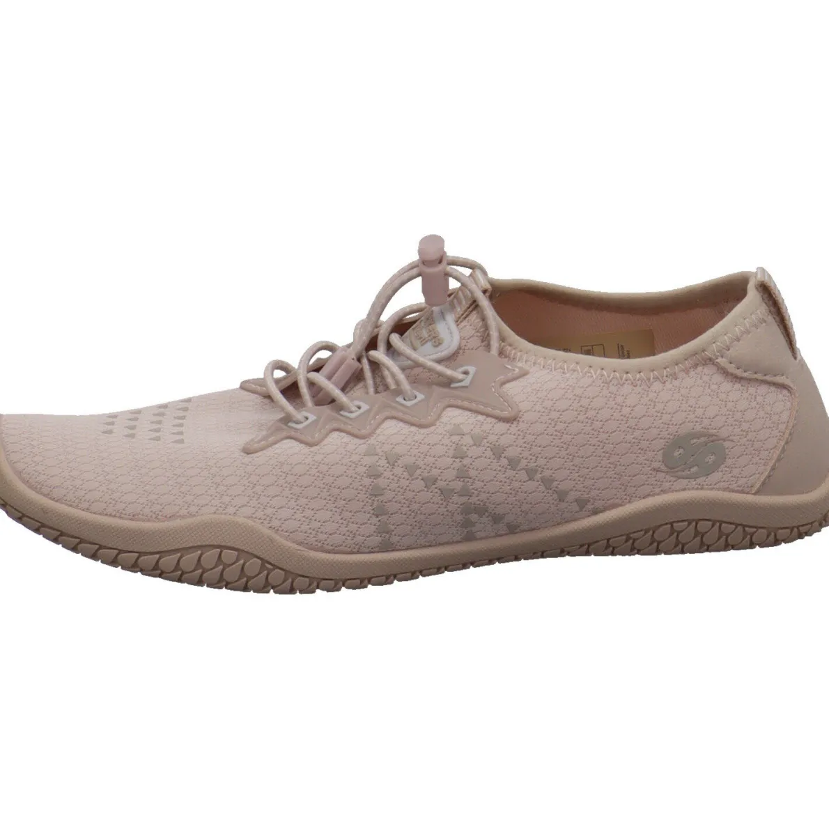 Das Textil Gewebe in Rosa, ist ausgesprochen flexibel und wird durch die Synthetik Einsätze der Schnürung toll in Szene gesetzt. Durch die automatische Gummischnürung kannst du ihn genau an deinen Fuß anpassen und mit den Laschen am Schaft ist der Einstieg sehr leicht. Die Laufsohle ist ist besonders dünn und flexibel gearbeitet und die Innensohle lässt sich entnehmen. So hast du das optimale Barfuß Gefühl und unterstützt die natürliche Fuß Bewegung.