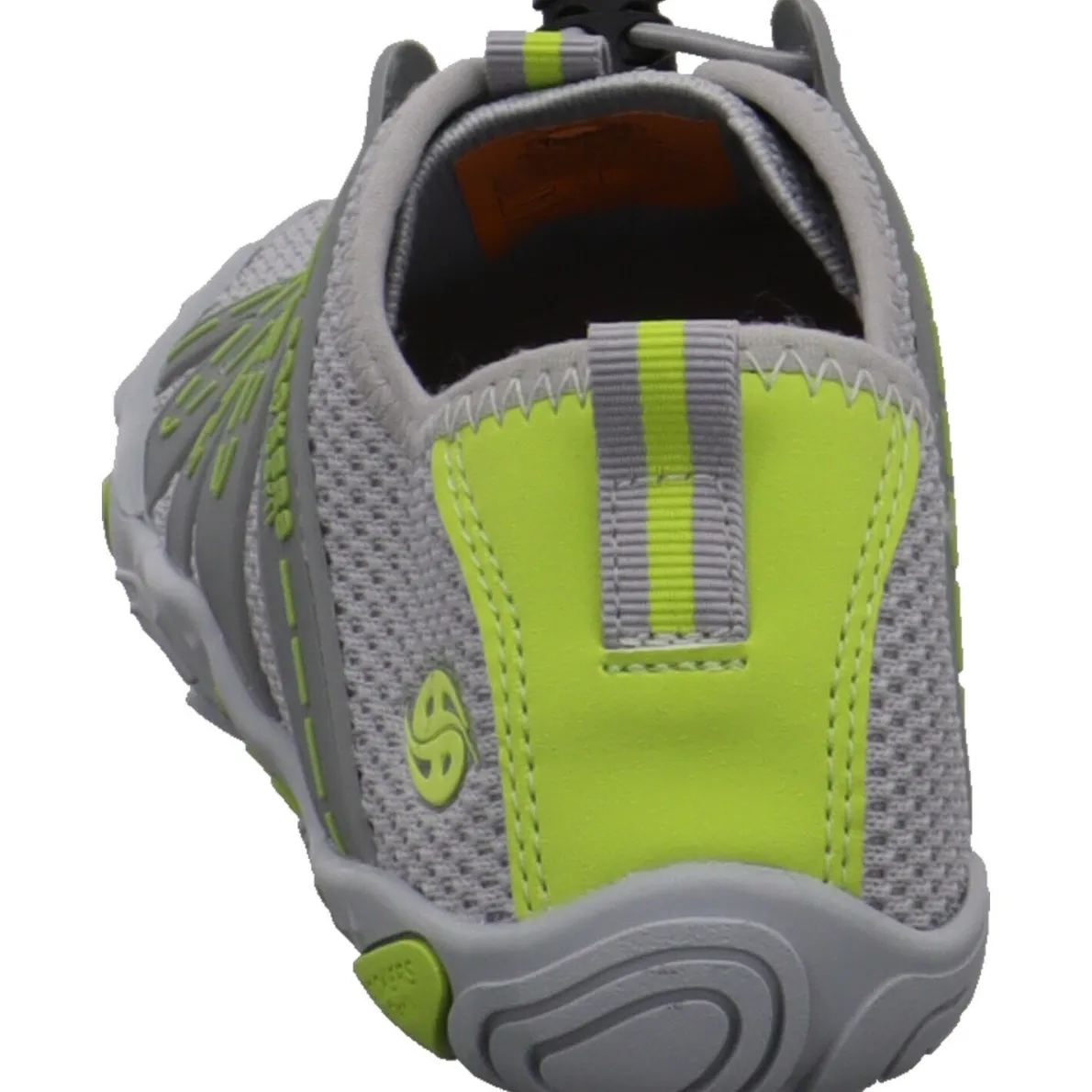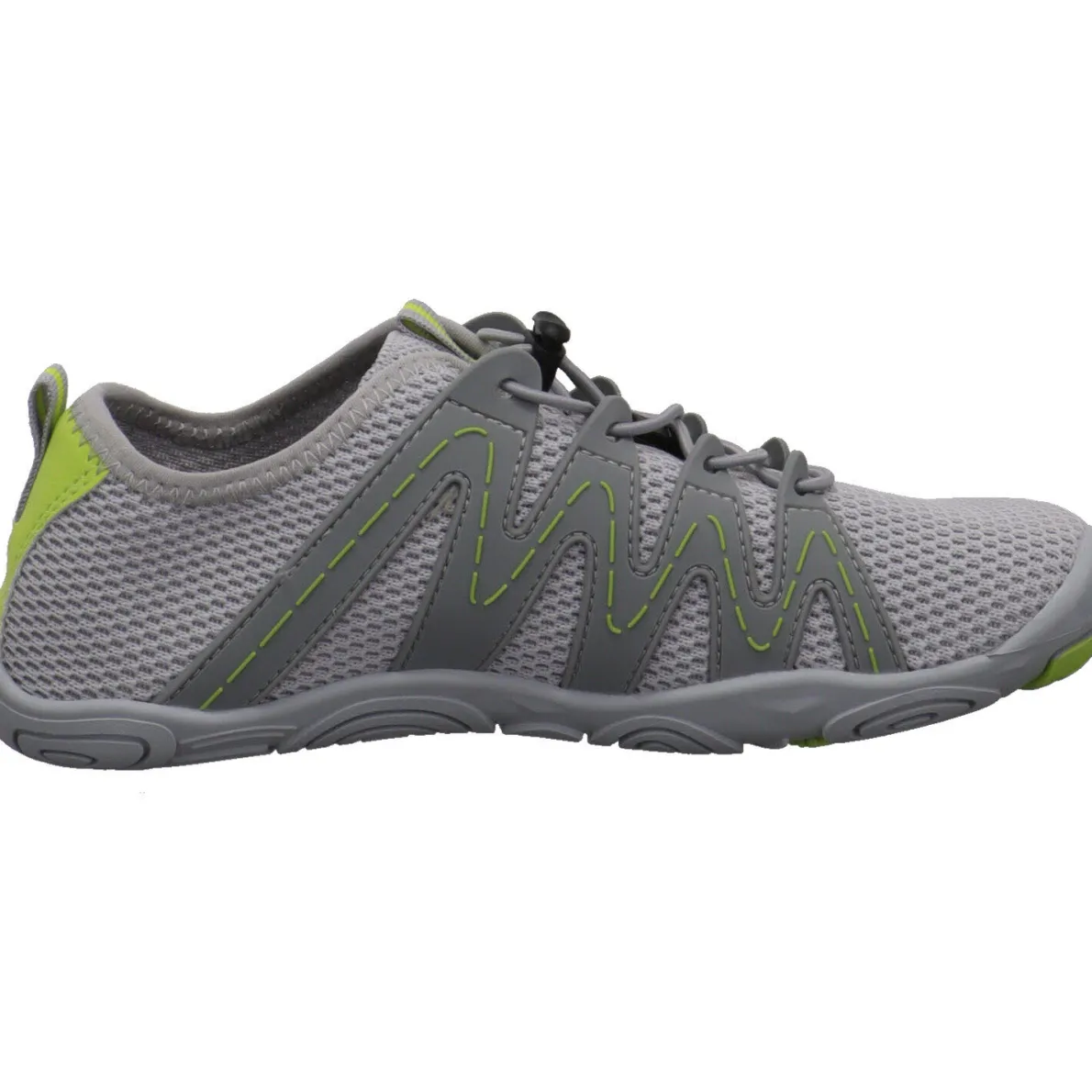 Das Textil Gewebe in Grau, ist ausgesprochen flexibel und wird durch die Synthetik Einsätze der Schnürung und Akzente in Grün, toll in Szene gesetzt. Durch die automatische Gummischnürung kannst du ihn genau an deinen Fuß anpassen und mit den Laschen am Schaft ist der Einstieg sehr leicht. Der Zehenbereich ist großzügig gearbeitet und bietet deinem Fuß viel Platz und Bewegungsfreiheit. Die Laufsohle ist besonders dünn und flexibel gearbeitet und die Innensohle lässt sich entnehmen. So hast du das optimale Barfuß Gefühl und unterstützt die natürliche Fuß Bewegung.