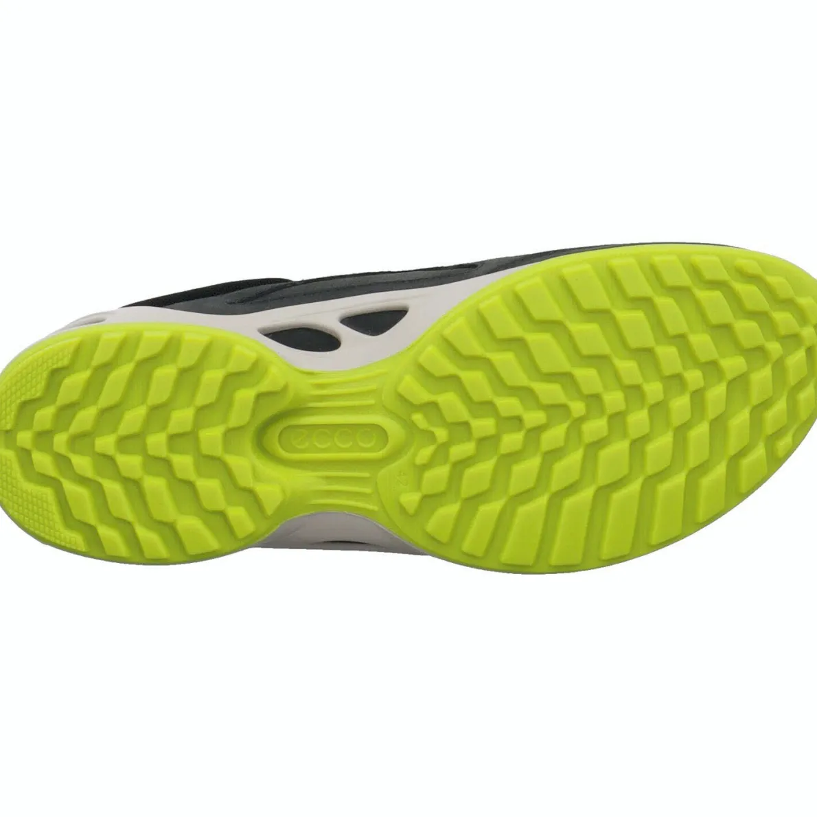 Die Ecco Biom Laufsohle ist hell abgesetzt und so gearbeitet, dass deine Füße so weit wie möglich die natürliche Fußstellung erreichen.