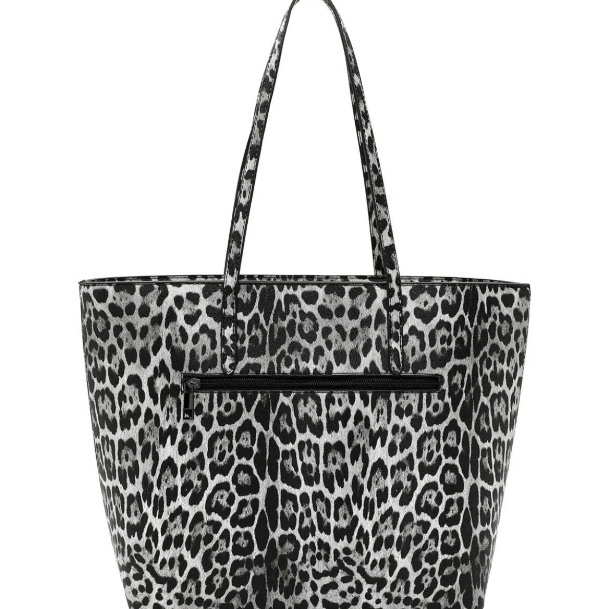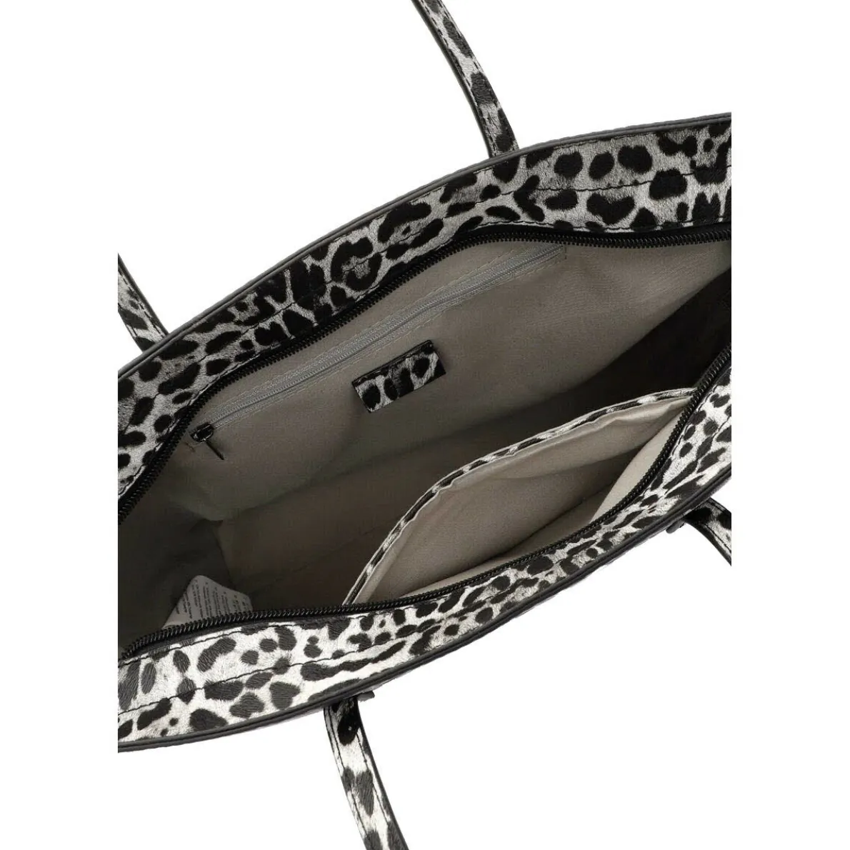Gefertigt aus Kunstleder in Schwarz Weiß, ist die Handtasche mit einem angesagten Leo Animal Print versehen.
