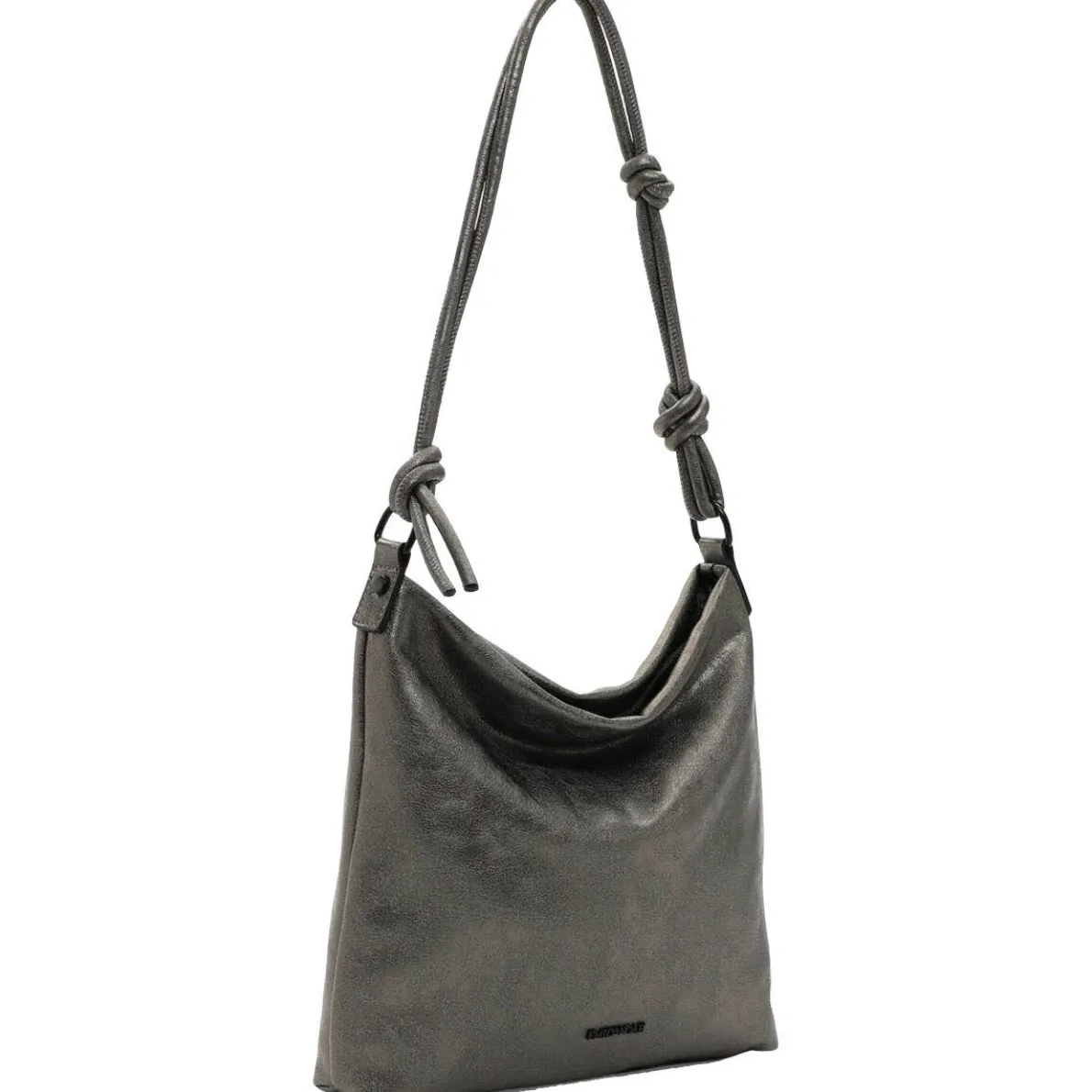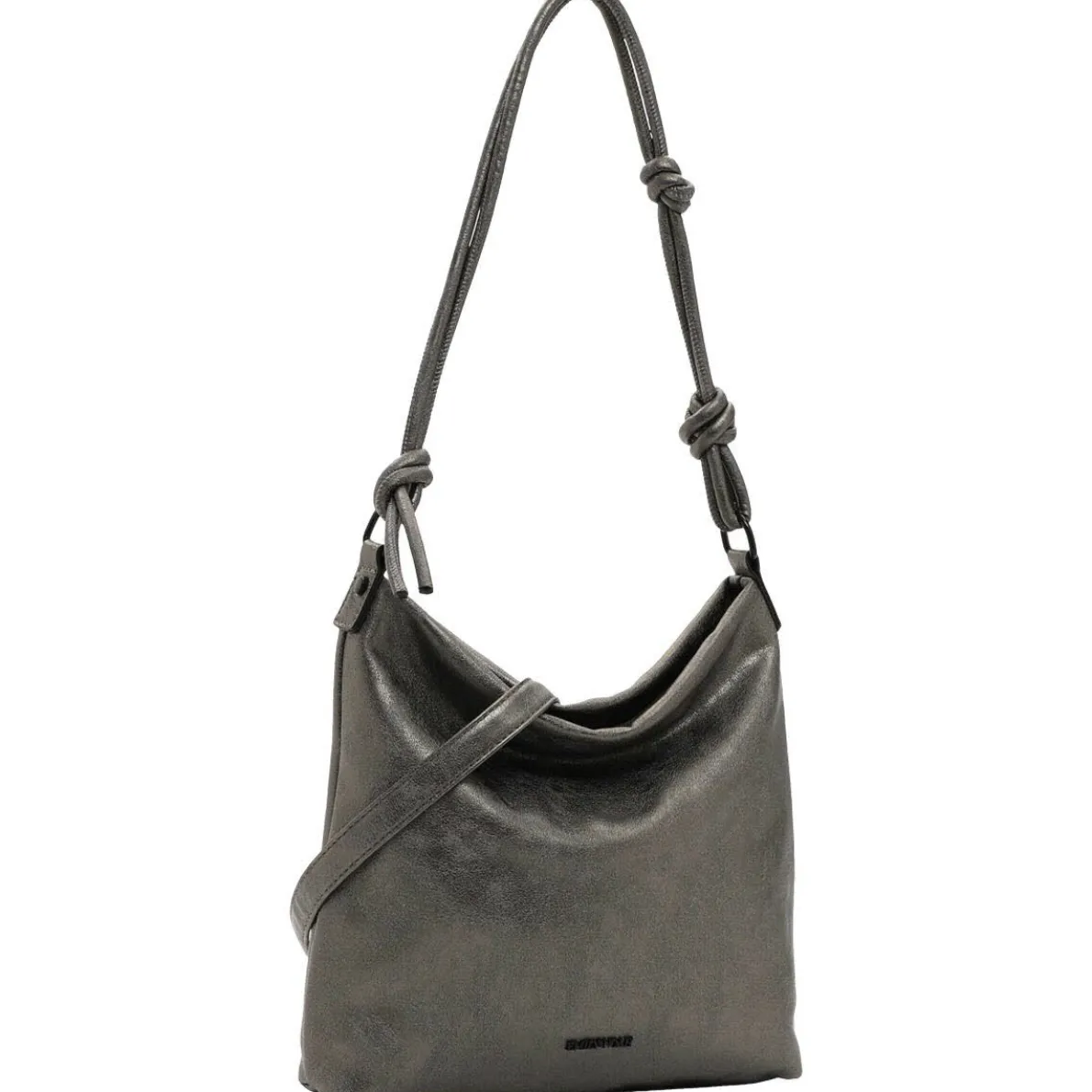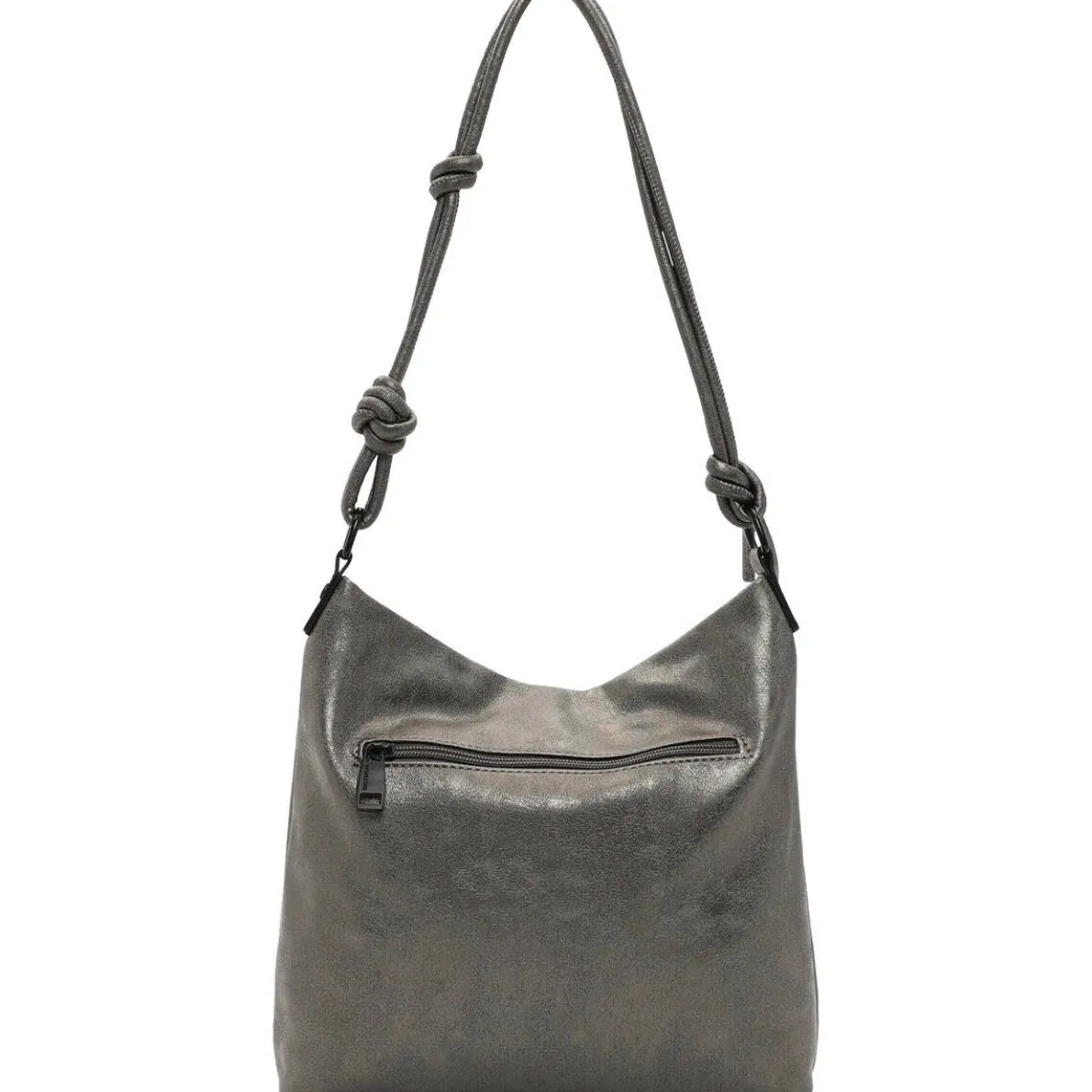 Die Deele aus dem Hause Emily & Noah ist eine schicke kleine Damen Schultertasche aus hochwertigem Kunstleder in Grau mit einem schönen Metallic Schimmer. Der Tragehenkel wird durch stilvoll gesetzte Knoten, schön in Szene gesetzt.