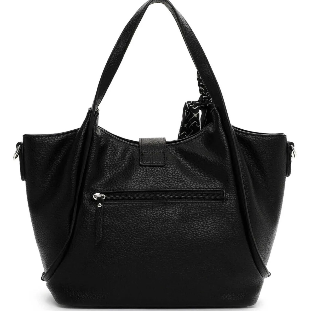 Gefertigt aus pflegeleichtem Kunstleder in Schwarz macht die Handtasche zu jedem Outfit eine ausgesprochen gute Figur. Highlight ist das schicke Tuch, das besonders ins Auge fällt.