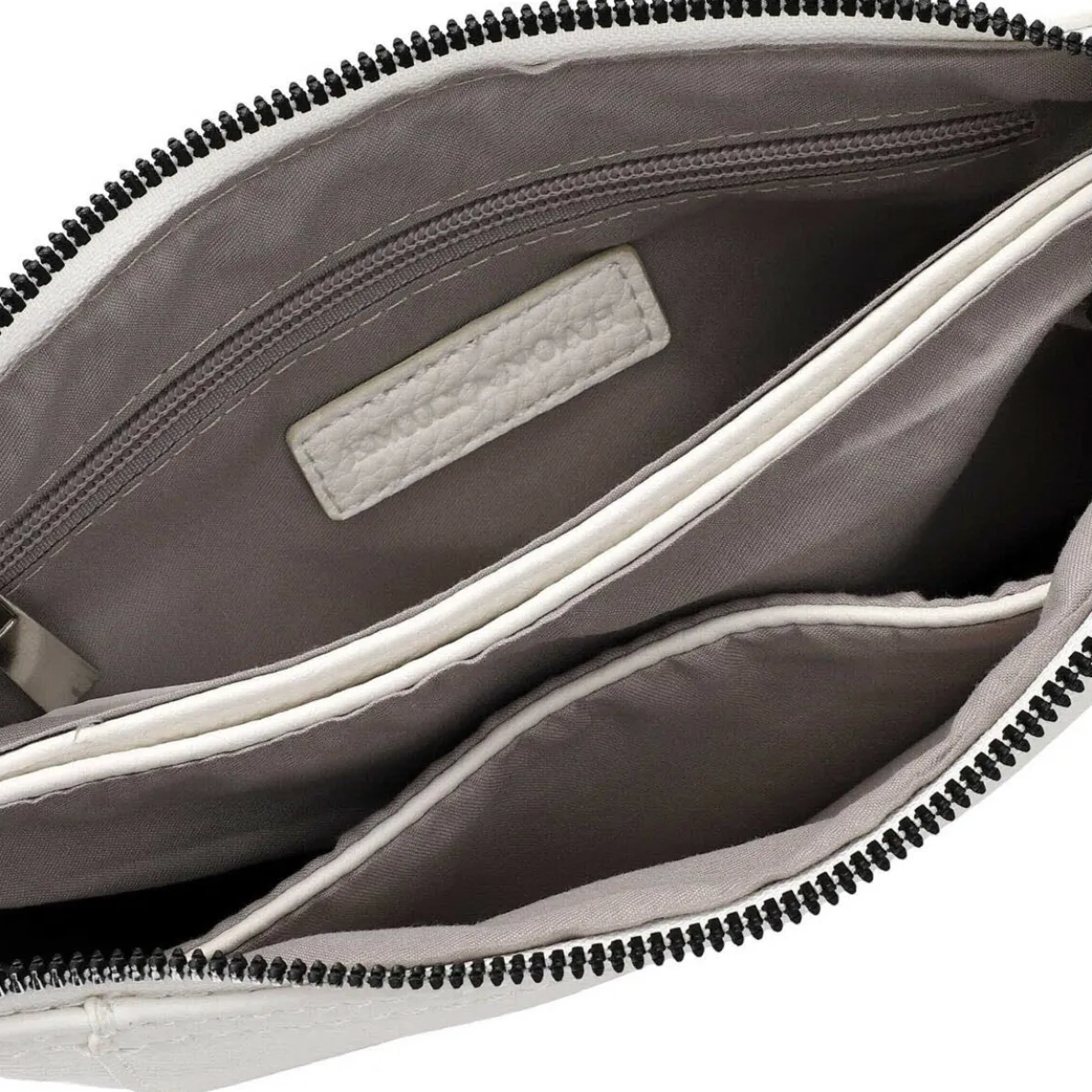 Ein Reißverschlussfach und ein Steckfach innen