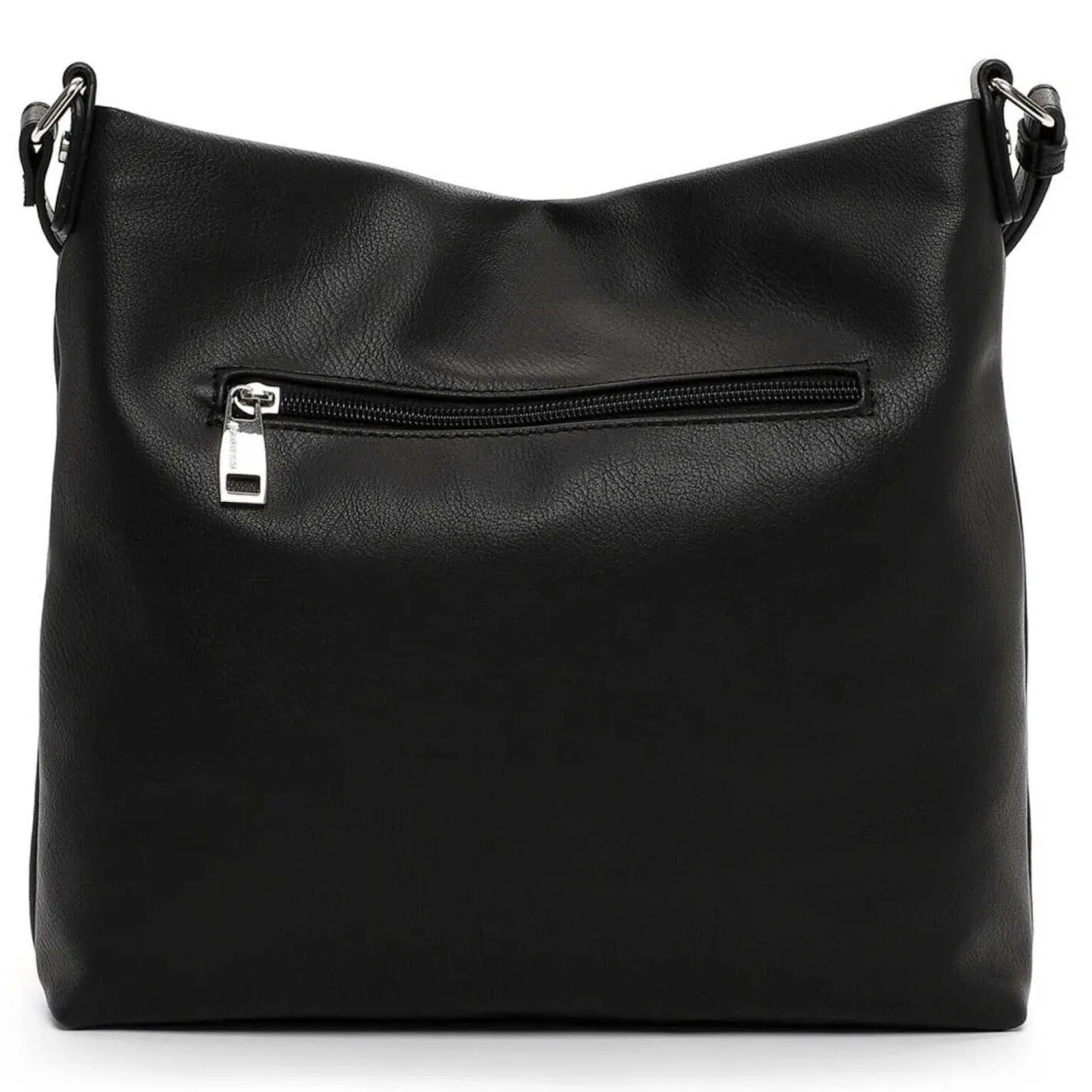 Edel verarbeitetes Kunstleder in Schwarz wurde mit einer angenehmen Haptik und einer authentischen feinen Narbung versehen, die der Handtasche das gewisse Etwas verleiht. Der Umhängegurt ist verstellbar, so dass du die Tasche perfekt anpassen kannst.