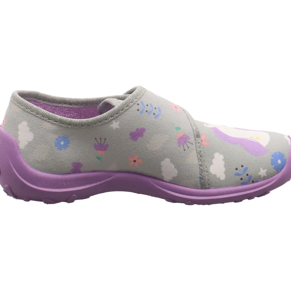 Dieser Mädchen Hausschuh Boogy von Fischer Markenschuh begeistert durch sein schönes Motiv mit einem Einhorn und vielen kleinen Sternen, Wolken und Blumen in Weiß und Rosa. Ein weiteres Highlight sind die Textil Kanten mit ihrem dezenten Glitzer Effekt. Er ist perfekt für Mädchen die zu Hause, im Kindergarten oder der Schule toben und herumtollen wollen.